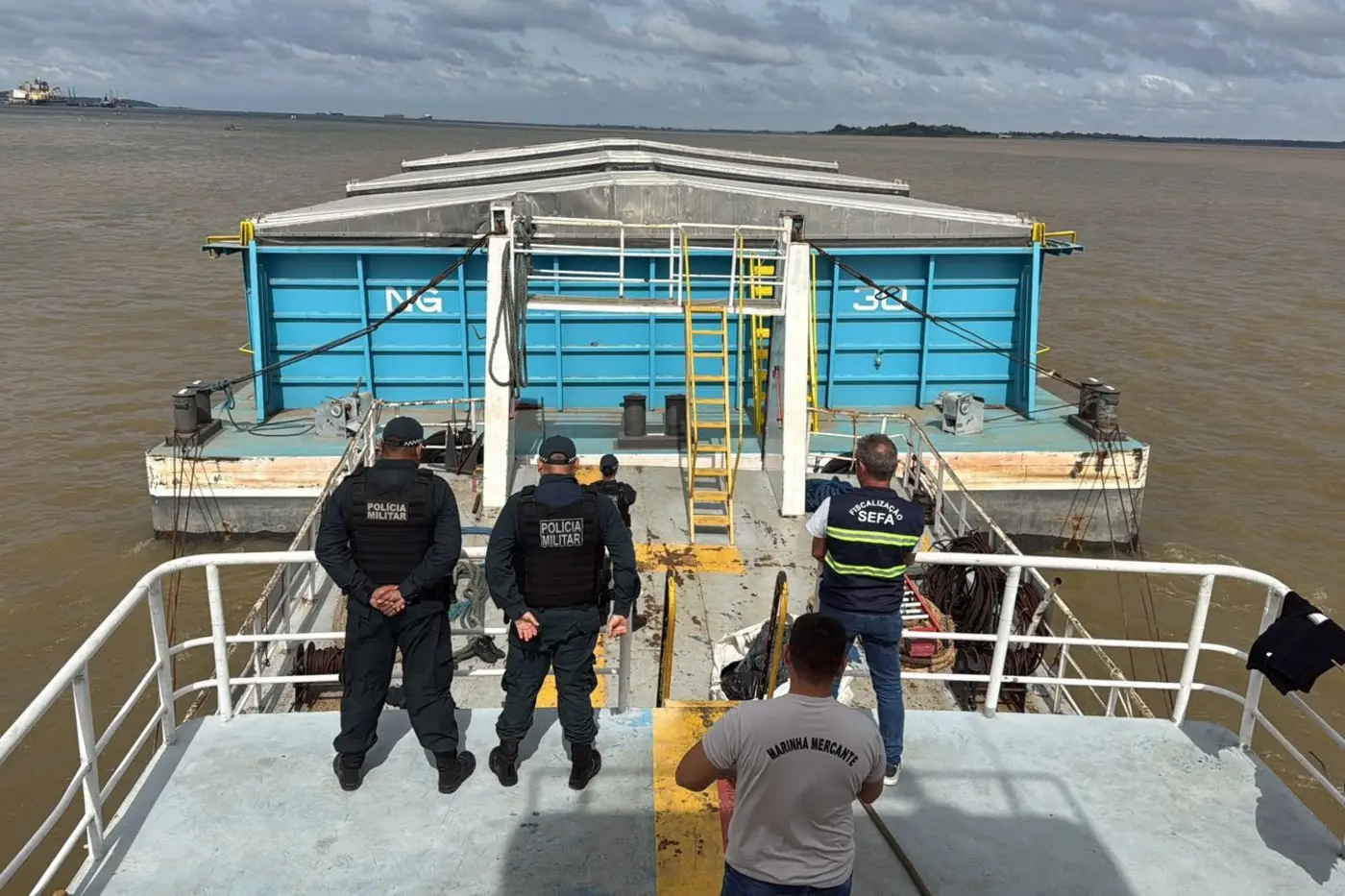 A equipe fiscal abordou um empurrador que transportava a carga. Segundo o coordenador Roberto Mota, a embarcação possuía CNPJ registrado em Manaus (AM) e apresentou, após o início da ação fiscal, diversos Conhecimentos de Transporte Eletrônico (CT-es) emitidos em Santarém, mas apenas referentes ao transporte rodoviário dos caminhões que compunham a carga da balsa.