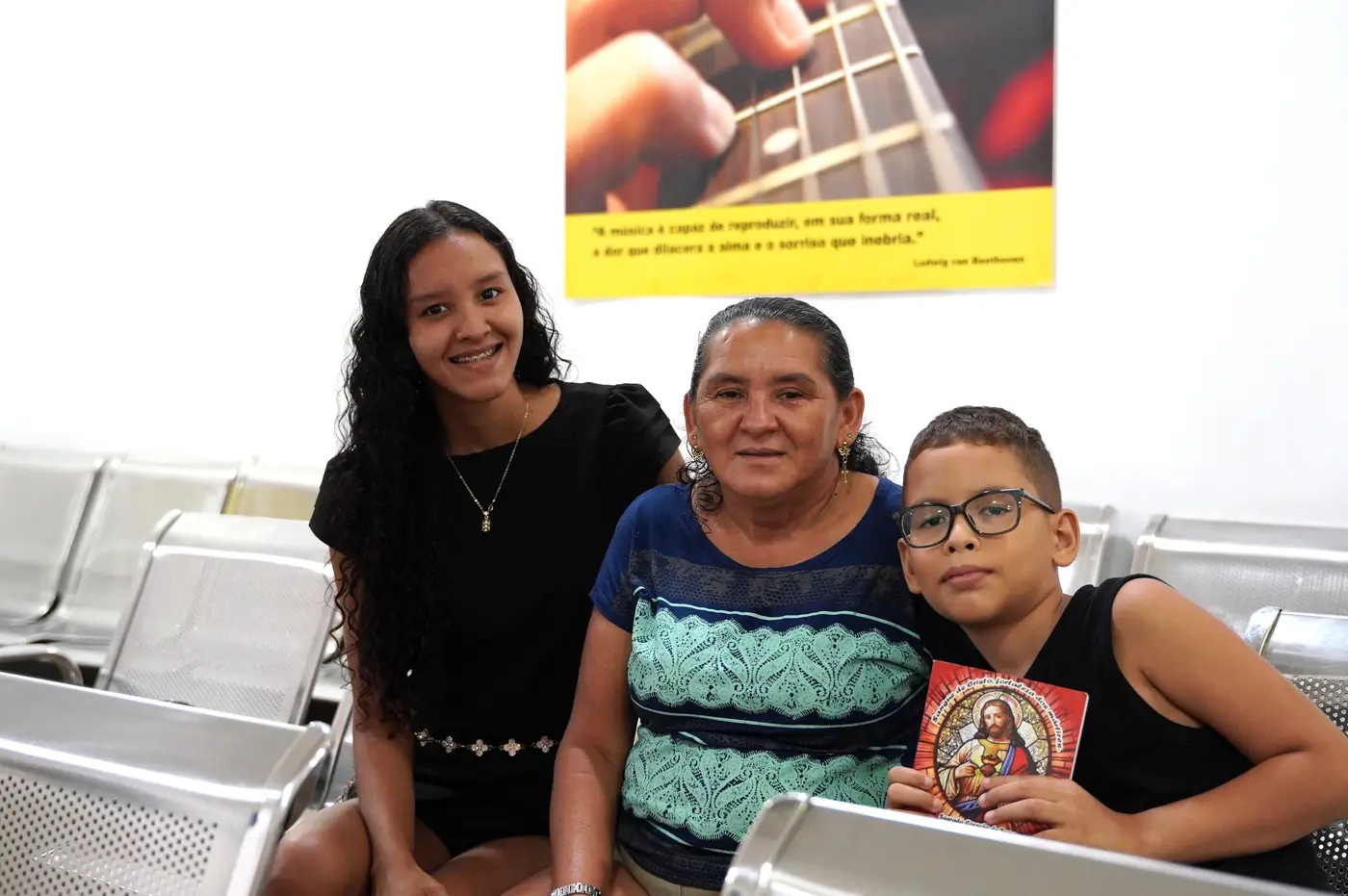 Maria Cassimiro ao lado da filha, Maria Fernandes, e do neto, João Gabriel