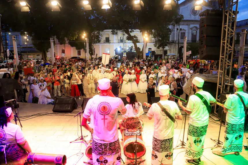 In the streets of the Cidade Velha neighborhood, where the procession passed, artists danced and sang, using different artistic languages to promote the reflection proposed by this year's theme — mixing religious symbols with other local elements. This diversity of expressions seeks to exalt one of the most significant periods of the state: the feast of Our Lady of Nazaré. The concentration began at Praça do Carmo at 5:30 PM, with departure at 7 PM, on a route that passed by historical points such as the Cathedral of Sé and the Lauro Sodré Palace, home of the Museum of the State of Pará (MEP).