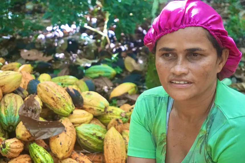 Para a trabalhadora Carmen Souza, fazer parte de uma cadeia tão relevante como a do cacau é muito importante, não só por questões econômicas como também culturais, já que ela convive diariamente com uma fruta que já se tornou praticamente símbolo da Transamazônica (rodovia BR-230, que se estende ao longo dos municípios polos na produção de cacau, como é o caso de Altamira). Com um facão, ela faz a separação das sementes e da polpa. Por dia, segundo informou, juntamente com o grupo contratado pelo proprietário do sítio onde atua, chega a encher 100 latas com amêndoas de cacau. “O cacau é nosso meio de sobrevivência, a gente aprendeu com a prática mesmo, desde cedo”, disse.