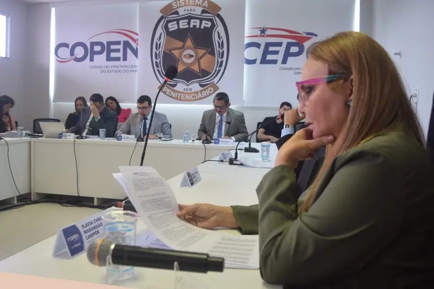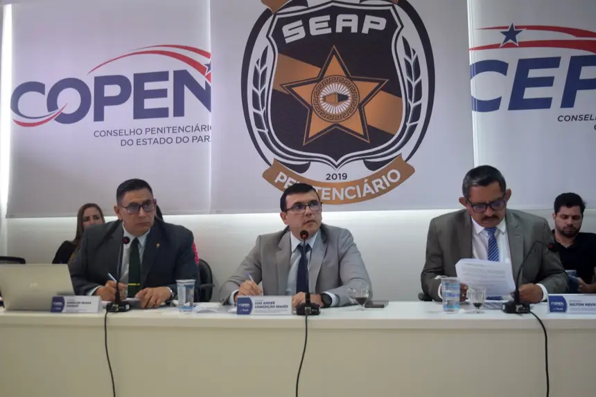 Presidida pelo secretário-adjunto de Gestão Administrativa, da Seap, coronel Luiz André Maués, que representou o secretário Marco Antonio Sirotheau Corrêa Rodrigues, o evento foi aberto com a cerimônia de posse dos novos integrantes do Conselho: Flávia Christina Maranhão Campos, representante da Defensoria Pública do Estado do Pará (DPE); Aline Carneiro Bezerra, do Conselho Regional de Psicologia (CRP); Ediel Gama Lopes, da Ordem dos Advogados do Brasil - Seção Pará (OAB-PA); deputado estadual Nilton Neves, da Assembleia Legislativa do Pará (Alepa); Clay Anderson Chagas e Wando Dias Miranda, ambos da área do Direito Penal, Processual, Penal, Penitenciário e Ciências afins, e o coronel PM Ronaldo Braga Charlet, nomeado secretário executivo do Copen.