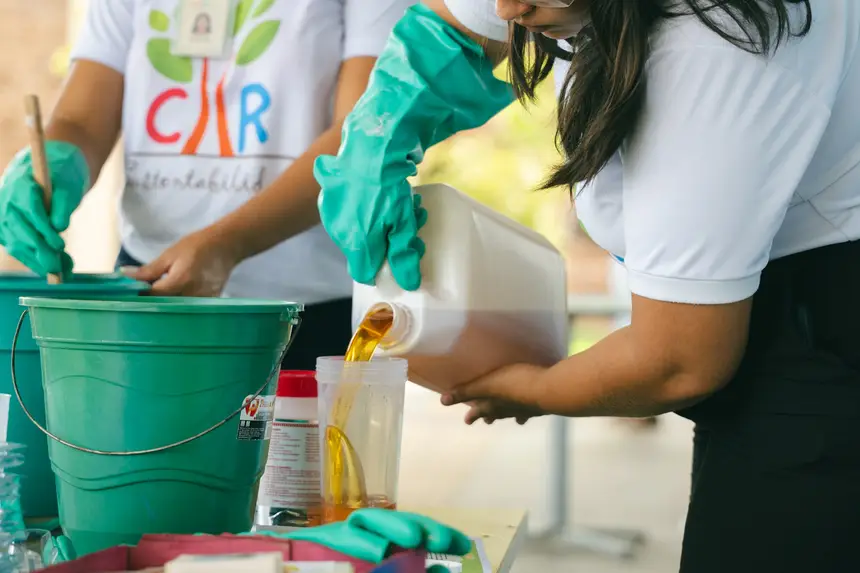 Oficinas de Reaproveitamento e Sabão Ecológico - Ensinam usuários, colaboradores e moradores do entorno a transformar óleo de cozinha usado em sabão e a reutilizar materiais para artesanato, reduzindo resíduos, estimulando a criatividade e gerando oportunidades de renda.