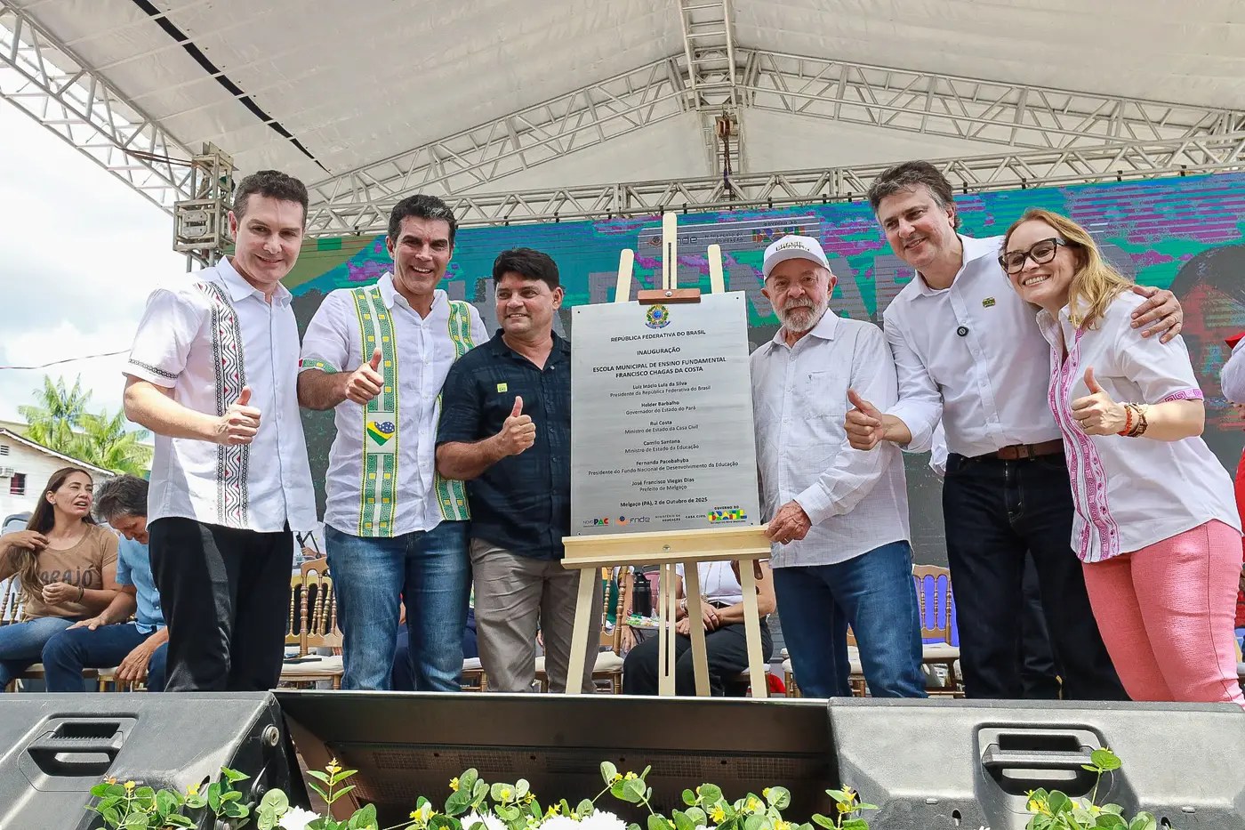 O presidente Lula anunciou ainda a inauguração de duas unidades de ensino fundamental: a escola São Sebastião Rio Limão do Japichaua, na zona rural de Breves, e a escola Francisco Chagas da Costa, em Melgaço.