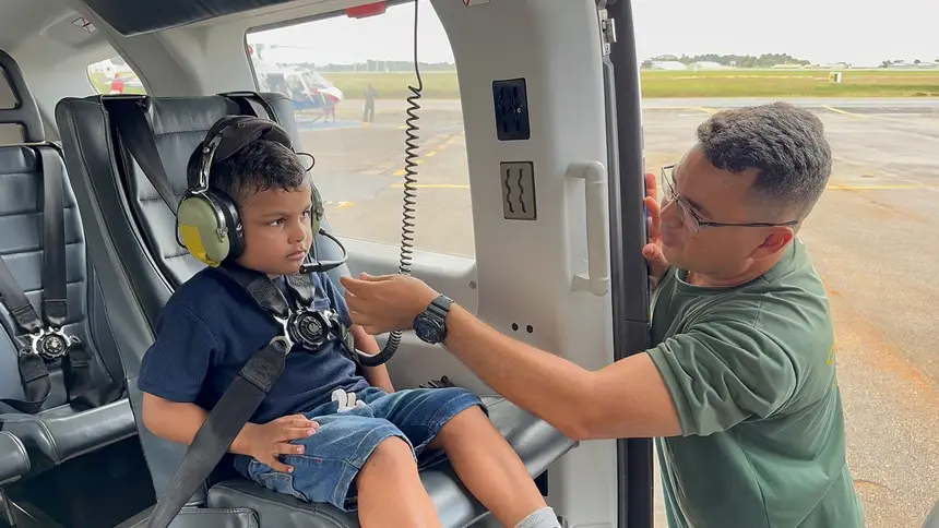 “Oportunidade maravilhosa ainda mais por não termos o contato direto com o grupamento aéreo do Estado, e poder vir com o meu filho e viver esse momento junto com a minha família. Ele gosta muito de ver os aviões e quem sabe isso desperte nele a vontade de ser um piloto de verdade”, disse Murilo Henrique, policial militar e pai de Abner.