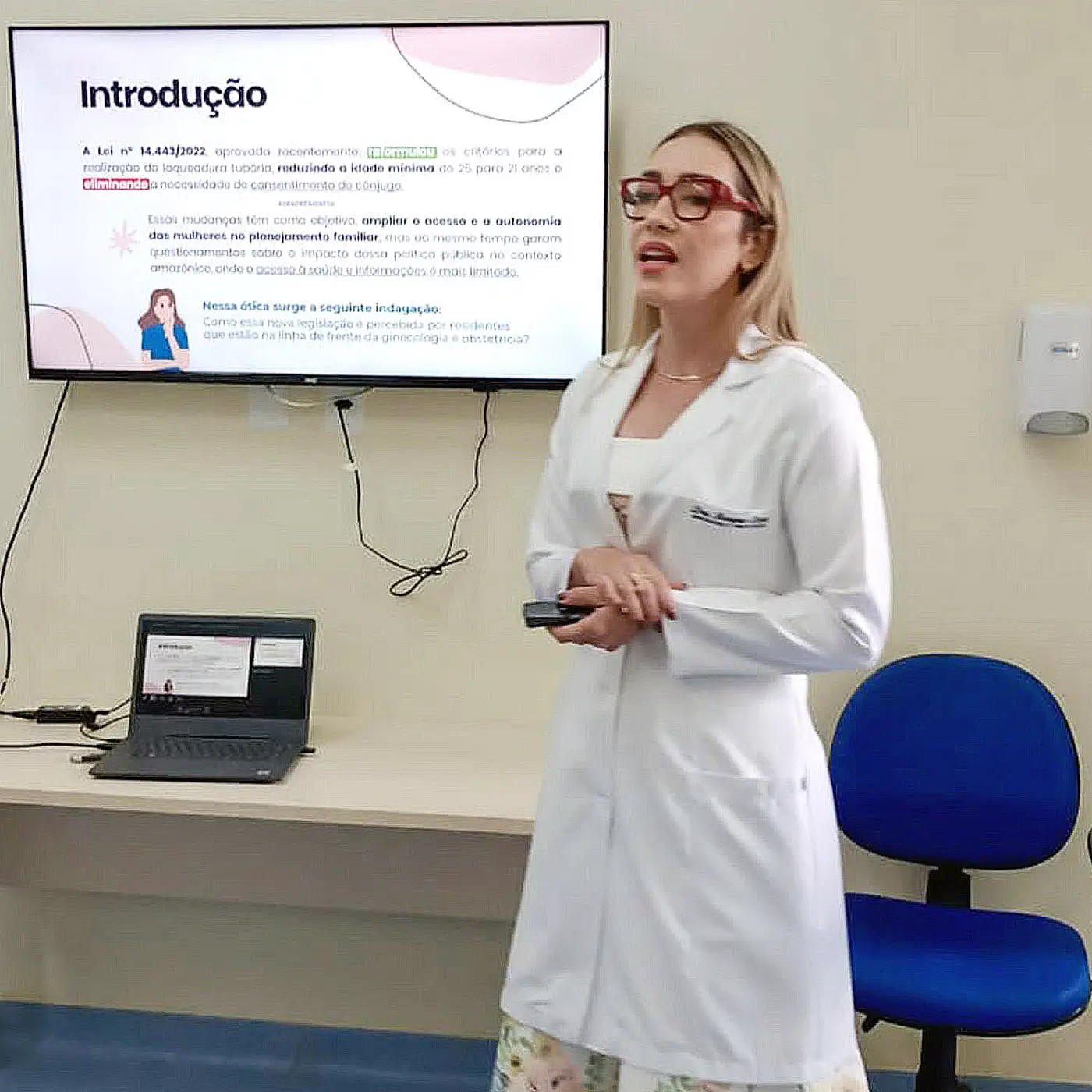 Ana Cláudia Gonçalves, médica pediatra e preceptora da área de ensino, revela que foi residente, nos anos de 2003 a 2005, na área de pediatria e conta que a vida é um constante aprendizado. “A gente aprende com os nossos residentes e a gente ensina também coisas que eles aprendem de uma forma geral, na medicina. Na pediatria, eles vão ter o olhar voltado para o bebê, para a criança, com suas especificidades, com suas particularidades. E a gente vê esse muito deles também na área de conhecimento”.