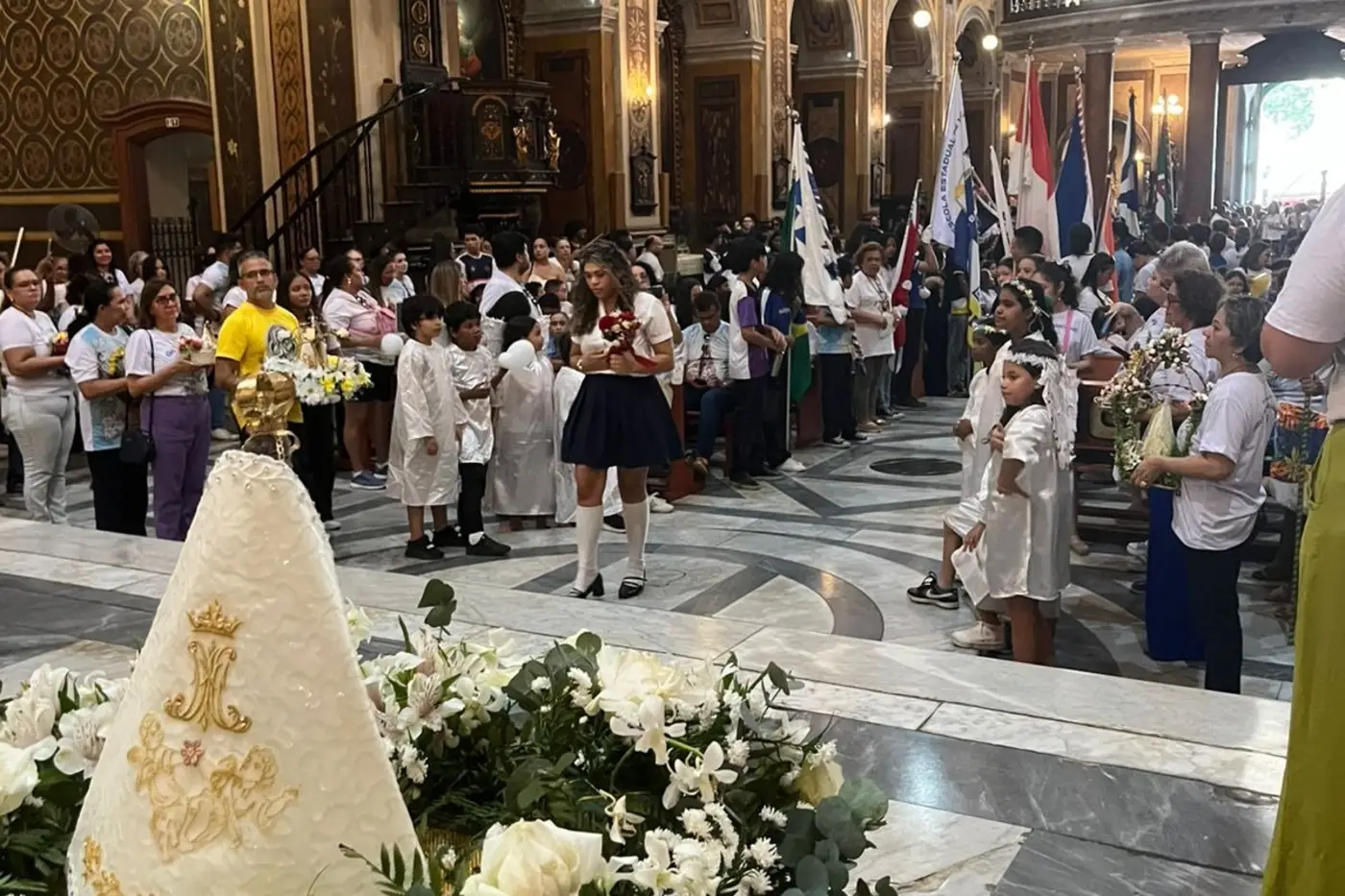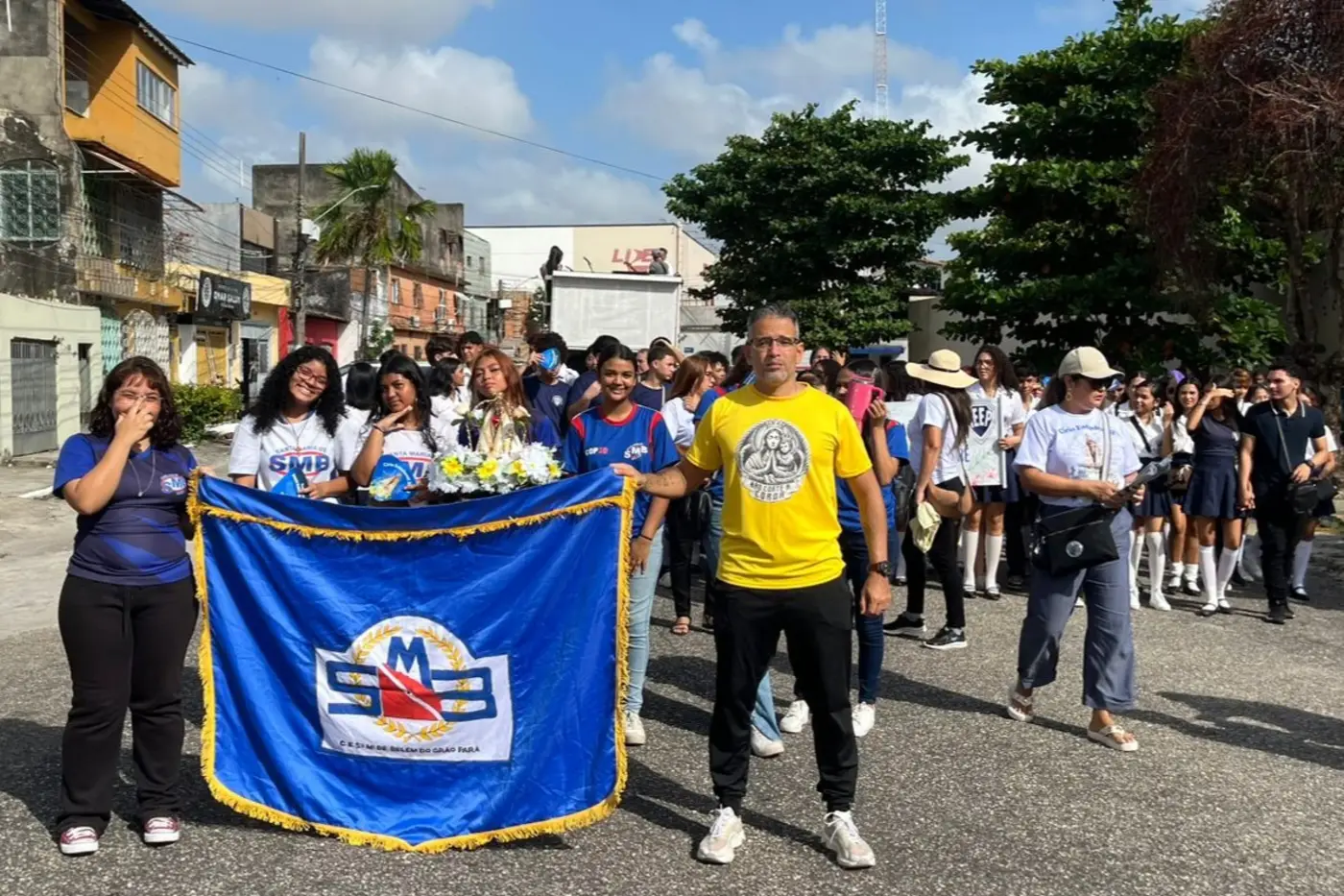 Procissão da comunidade escolar chega à Catedral Metropolitana de Belém, na Praça Dom Frei Caetano Brandão, Cidade Velha