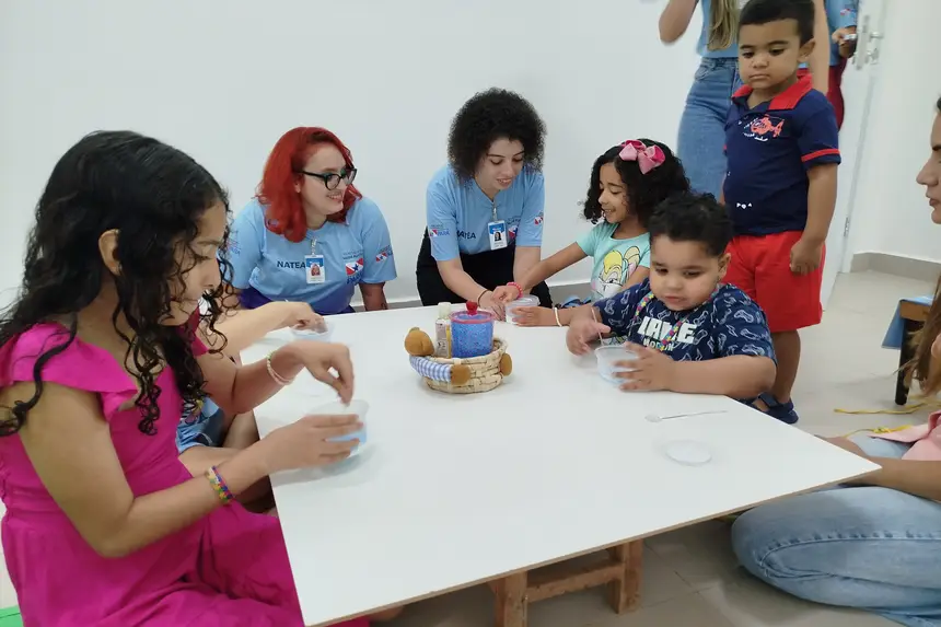A programação contou com oficinas de desenho e pintura, jogos educativos, dinâmicas de grupo e atividades sensoriais, todas voltadas ao estímulo do aprendizado e da interação social. O Natea valoriza o desenvolvimento cognitivo, emocional e motor das crianças, promovendo experiências que unem educação, inclusão e afeto.