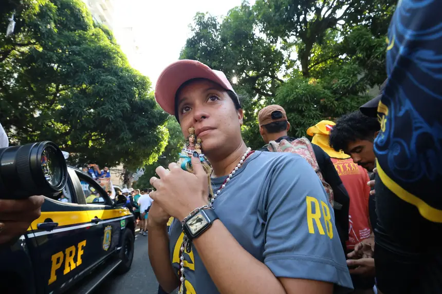 De mãos erguidas para a Virgem de Nazaré, o governador fez suas orações particulares. Ele estava ao lado da primeira-dama Daniela Barbalho. "É uma satisfação agradecer a Nossa Senhora de Nazaré pelas graças alcançadas. Pelas ruas de Belém, de Ananindeua e Marituba, por onde Ela passar, que derrame bênçãos!", disse o governador. "Viva intensamente este momento com Maria. Que Ela, a Rainha da Amazônia, possa proteger todas as nossas famílias", completou Helder Barbalho.
