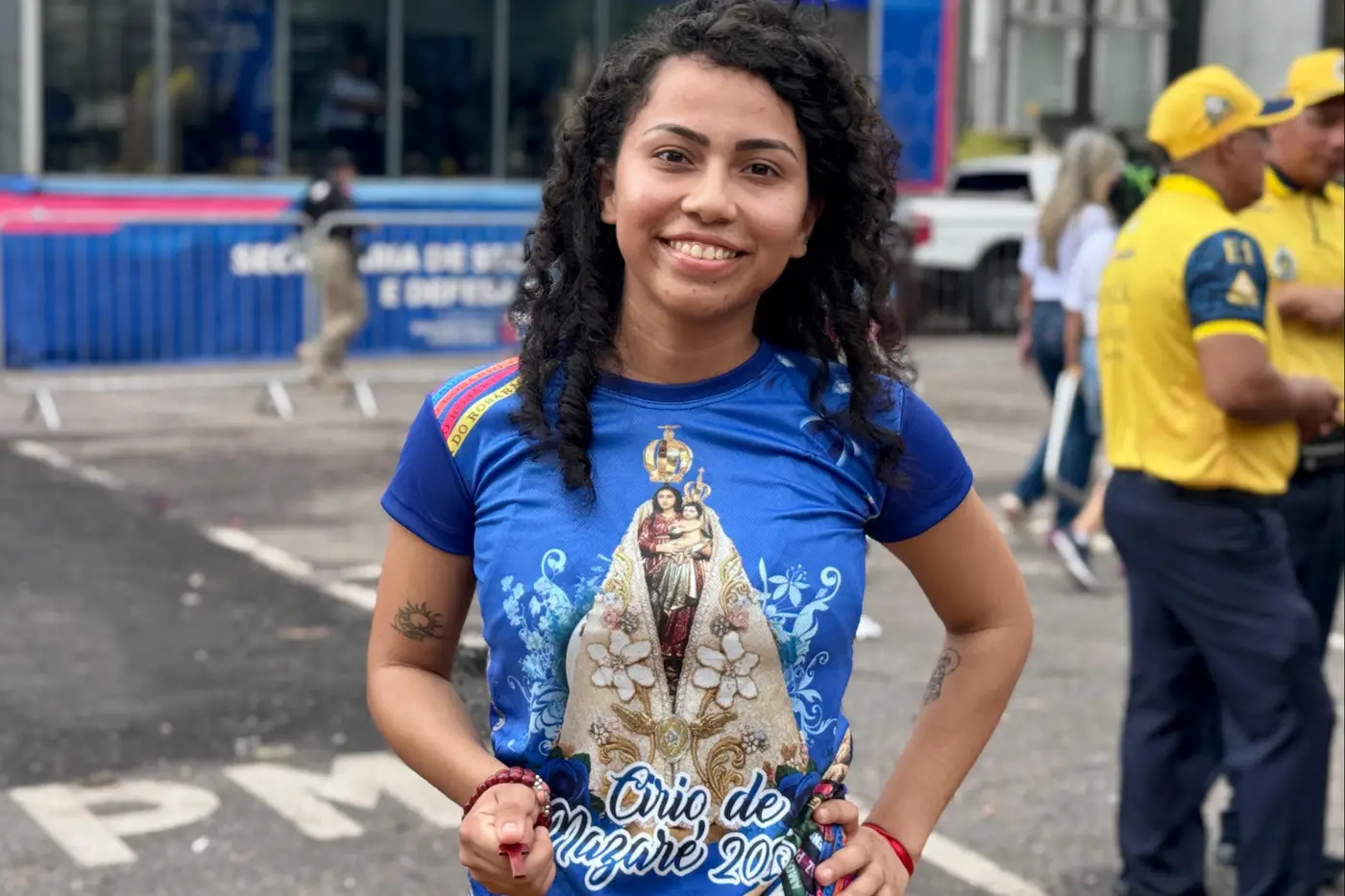 “Em 2019, eu estava prestando o vestibular, fiz a promessa pra 'Nazinha', pedindo que se ela me ajudasse a entrar no curso do meu sonho eu ia vir o quanto eu pudesse na corda dela, puxar a berlinda dela. E em 2020 passei no curso, estou até hoje quase me formando, graças a Deus. Eu vi que tem um local onde a polícia está aqui, o que garante mais segurança, mais tranquilidade pra gente como nos outros anos que já viemos. Já aconteceu de estarmos na corda e nos perdemos de parentes, de amigos, e a polícia nos ajudou com apoio para encontrarmos quem estava com a gente. Então isso é muito importante para nós, que viemos para participar”, contou a estudante de engenharia de Petróleo.