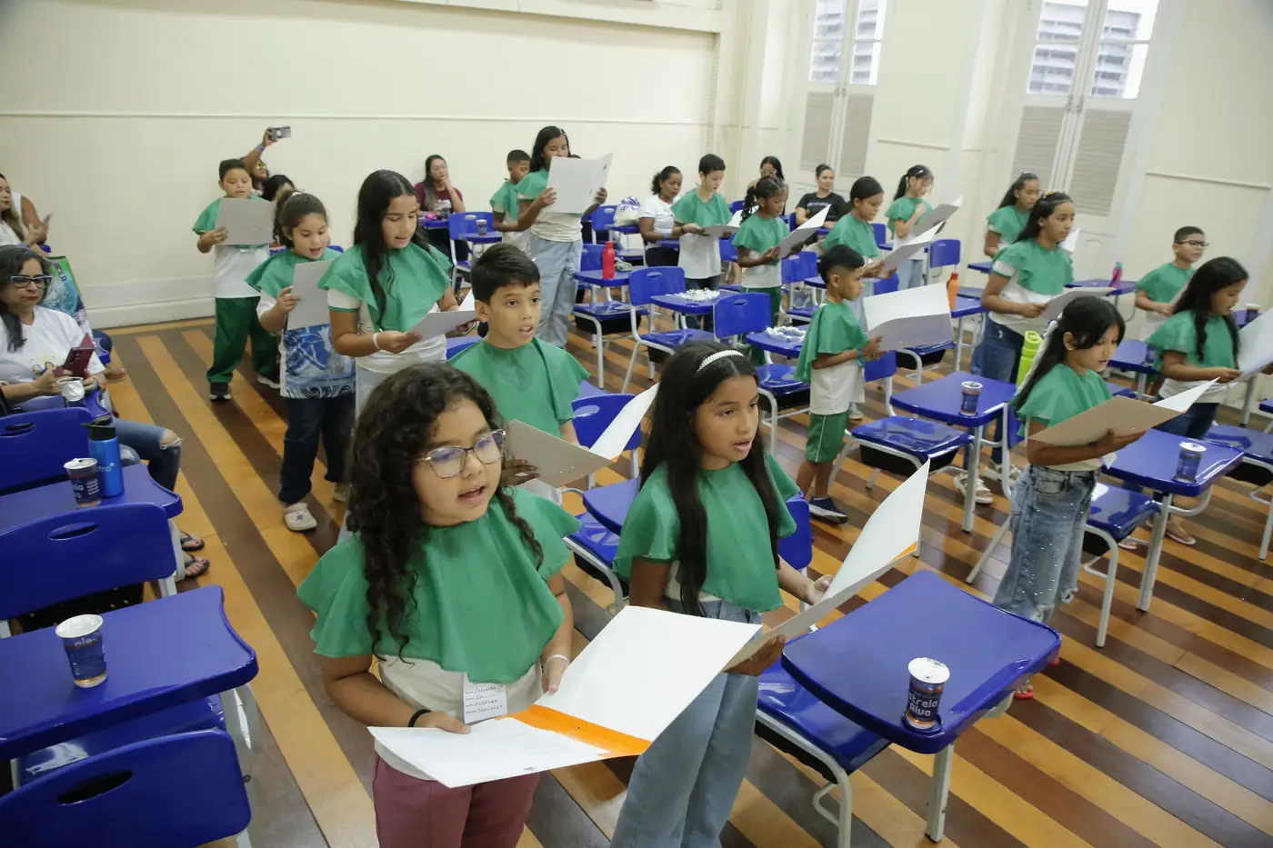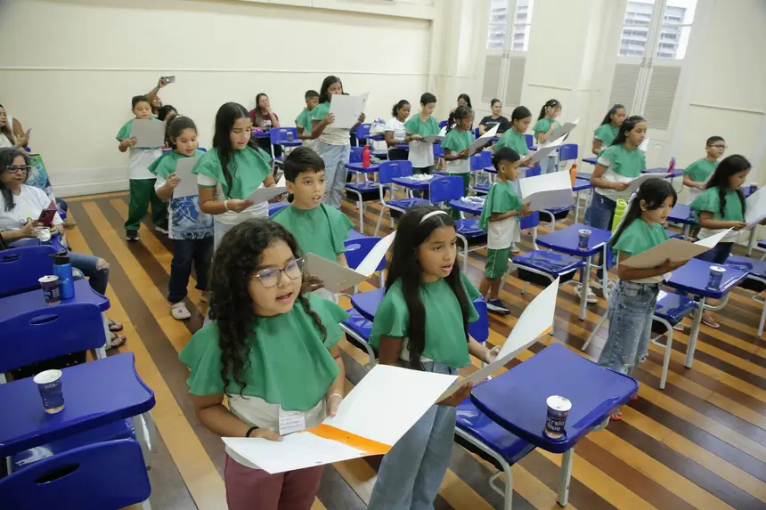 Quem também estava feliz participando pela primeira vez do coral é a estudante do 4° ano, Andressa Virgínia. “É legal participar do coral, é a primeira vez que eu participo. Fico um pouquinho nervosa, mas é legal porque eu gosto de cantar e nem sempre temos essa oportunidade”, comentou a estudante Andressa Virgínia.