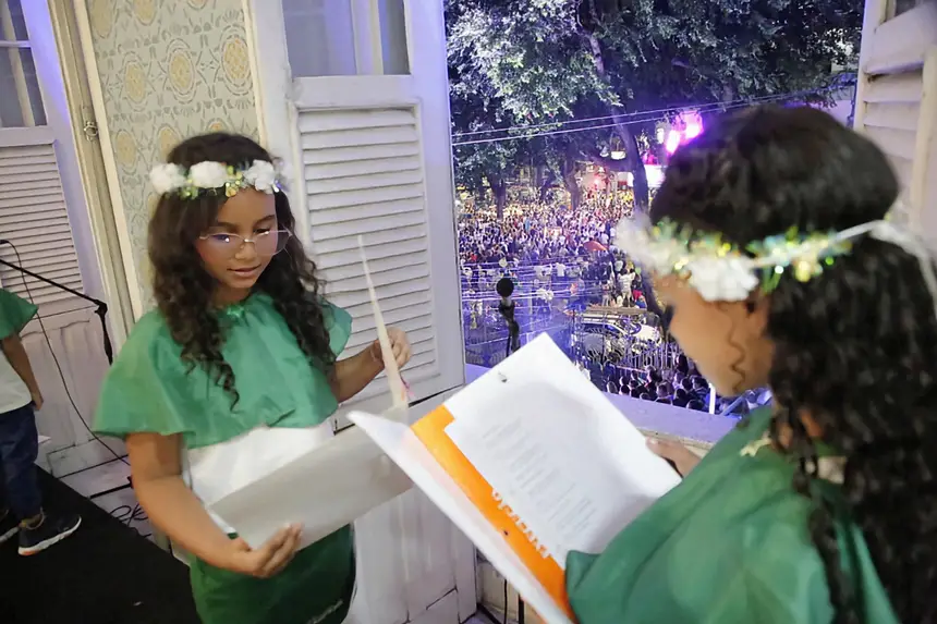 Uma noite de encanto e emoção marcou o sábado (11), durante a Trasladação, em Belém. Servidores da Secretaria de Estado de Educação (Seduc), que acompanharam a procissão da arquibancada, montada no Centro de Formação e Profissionais da Educação Básica do Estado do Pará (Cefor), no bairro da Campina, foram agraciados com a apresentação especial do coral das 25 crianças que, das históricas janelas do prédio centenário, do Cefor, mais conhecido como IEEP, cantaram em homenagem à Nossa Senhora de Nazaré, a padroeira dos paraenses.