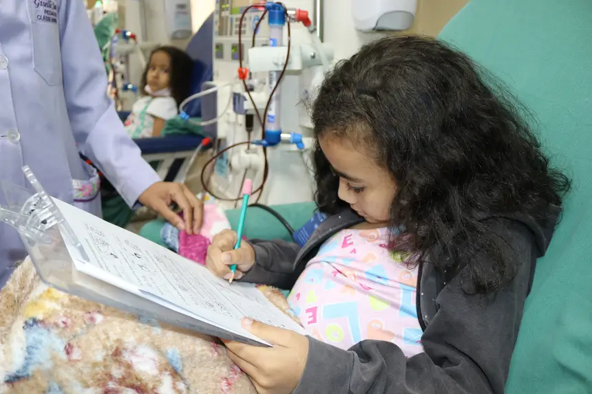 Classe Hospitalar - Rosilene Gonçalves, pedagoga da Fundação Santa Casa, relata que dez professoras e uma coordenadora da Classe Hospitalar da Secretaria de Estado de Educação (Seduc) atuam na Santa Casa nas áreas de hemodiálise e pediatria, além do Espaço Acolher. A instituição possui convênio de cooperação técnica com a Seduc desde 2009.