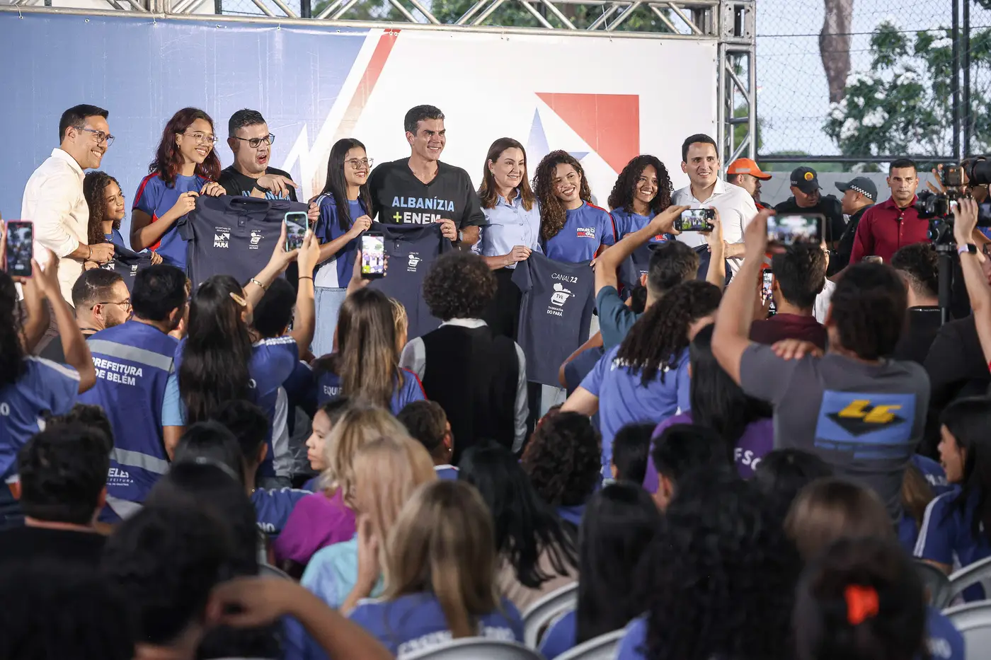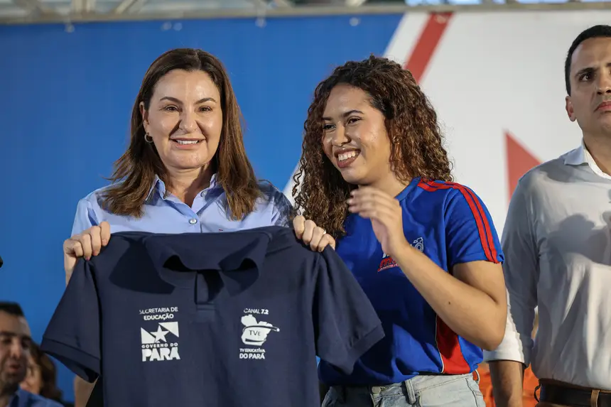 Durante a agenda, alunos que participam das atividades da TV Educativa, transmitida pelo canal 7.2, entregaram camisas personalizadas ao governador e à vice-governadora. O canal é uma iniciativa da Seduc que amplia o alcance do ensino em todo o Pará, com conteúdos alinhados ao currículo estadual e às avaliações externas.