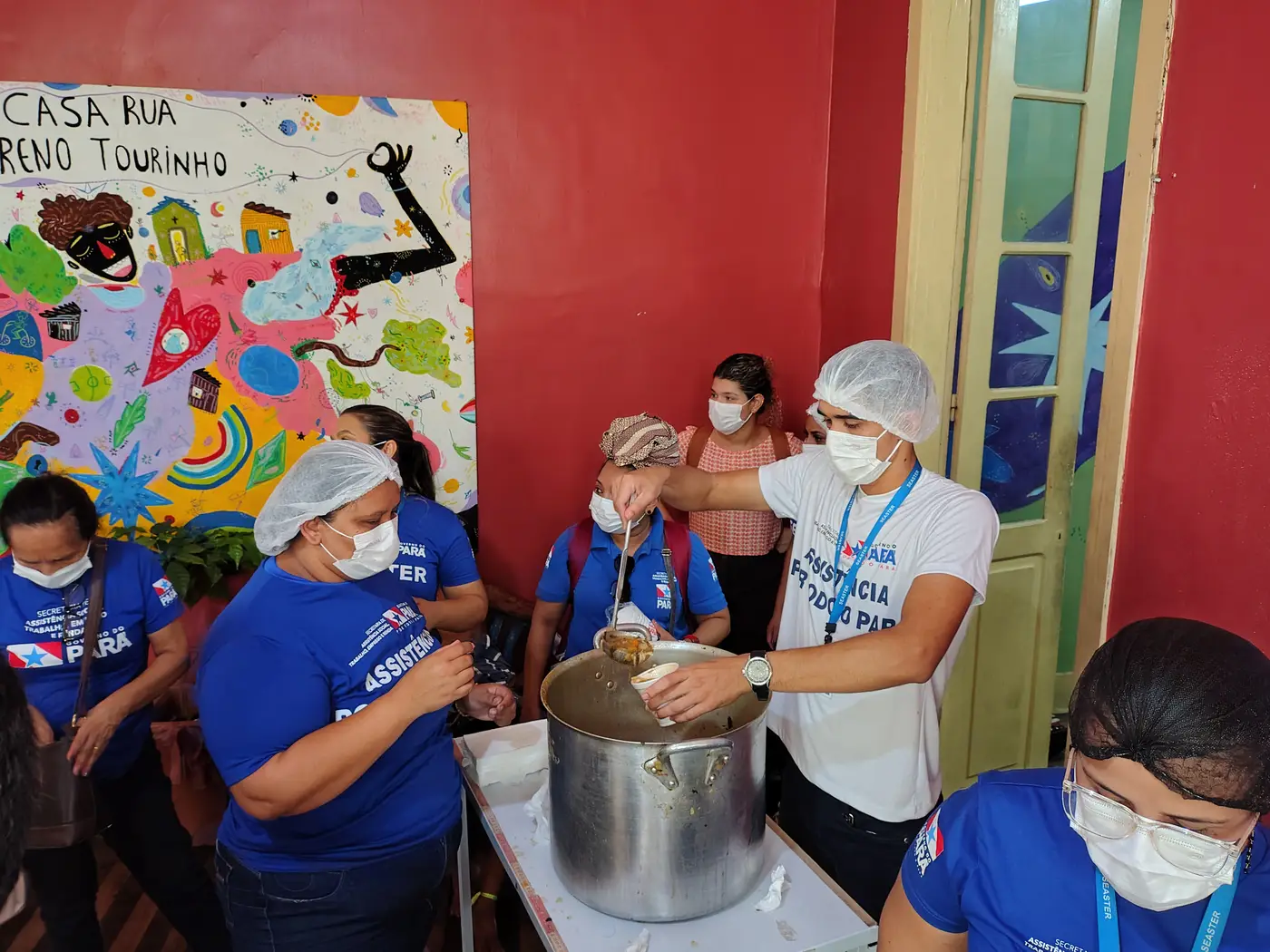A distribuição de sopa contou com a participação de servidores e voluntários, que atuaram na preparação e entrega das refeições. A ação reforça o compromisso do Governo do Pará em promover dignidade, respeito e inclusão social às pessoas em situação de rua e às famílias que enfrentam insegurança alimentar.