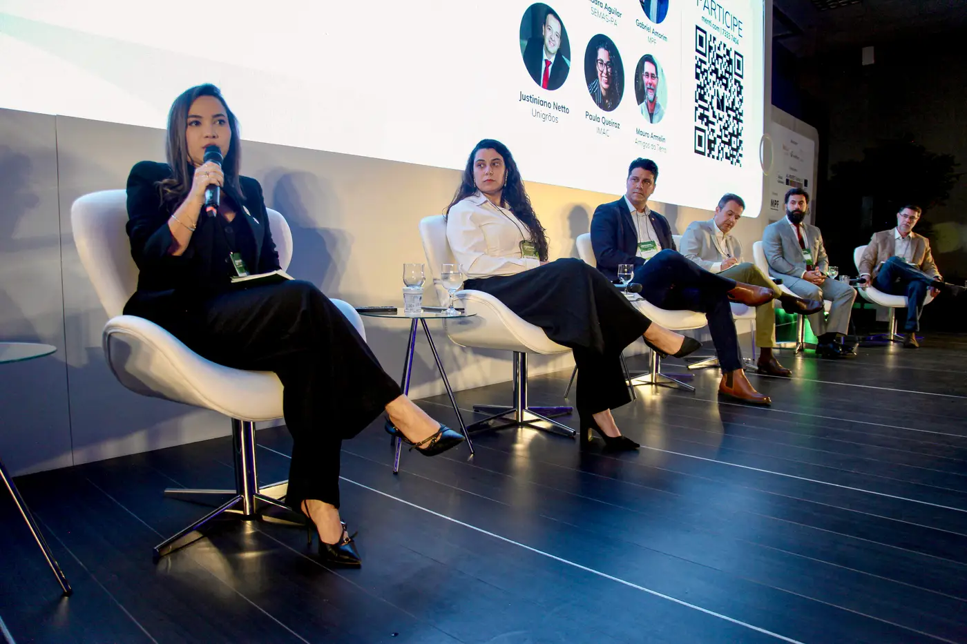 A diretora de Mudanças Climáticas da Semas, Indara Aguilar, representou o Estado no painel “Reinserção produtiva: Caminhos para a regularização socioambiental e econômica na pecuária”, ao lado de João Paulo Franco, coordenador de Produção Animal da Confederação da Agricultura e Pecuária do Brasil (CNA); Gabriel Amorim, procurador do Ministério Público Federal (MPF); Justiniano Netto, presidente da Unigrãos; Paula Queiroz (Instituto Mato-Grossense da Carne - IMAC) e Mauro Armelin, diretor executivo da Amigos da Terra.