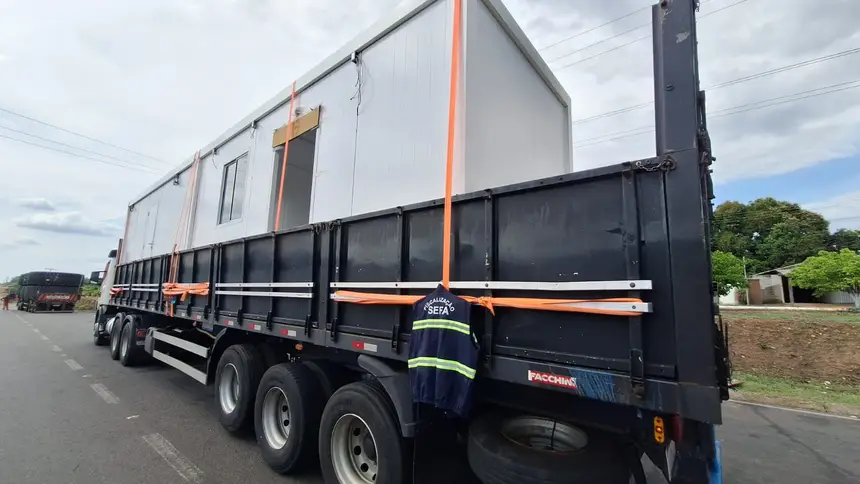 Módulos habitacionais - Fiscais de receitas estaduais apreenderam, também nesta quinta-feira (23), dois módulos habitacionais termoacústicos, avaliados em R$ 74.781,37. A apreensão ocorreu na Coordenação de Controle de Mercadorias em Trânsito de Carajás, no sudeste do Estado.