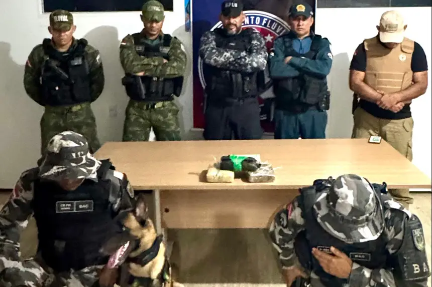 Abordagem - A equipe policial que atua na Base de Antônio Lemos, em Breves, deu início a mais uma operação de combate ao tráfico de drogas, coordenada pelo Grupamento Fluvial de Segurança (Gflu), na região do Marajó. Os agentes abordaram a embarcação denominada de “Rondônia”, que vinha de Manaus para o porto de Belém. Com a ajuda do cão farejador do Batalhão de Ações com Cães (BAC) da Polícia Militar, o “Anubis”, foi identificado 2.005 kg de substância do tipo Skank, e ainda 1.075 de substância do tipo Oxi, totalizando 3.080 kg de entorpecente. As drogas estavam na mala de um dos passageiros da embarcação. Após a ação, o homem e os entorpecentes apreendidos foram encaminhados para a Delegacia instalada na Base de Antônio Lemos, para a realização dos procedimentos cabíveis.