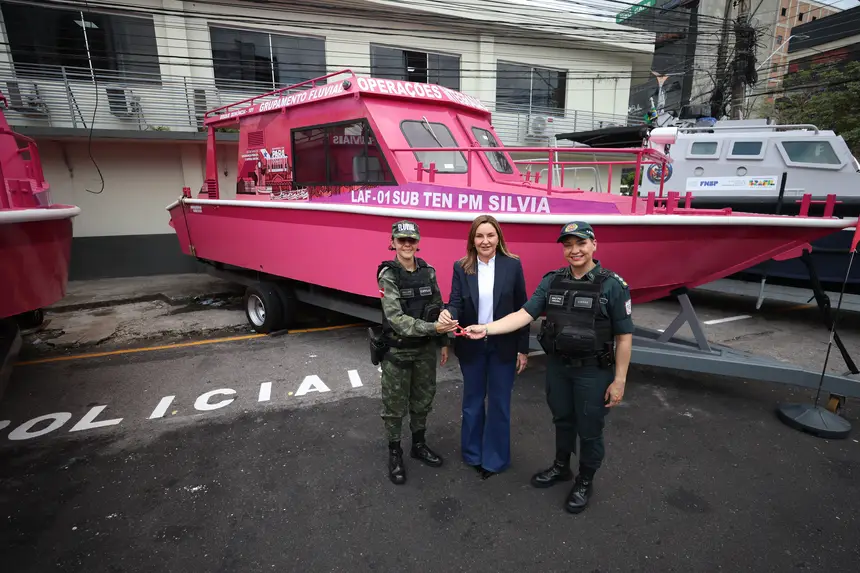 Pró-Mulher Pará - Todas as forças receberam uma nova lancha que será utilizada, especialmente, para o atendimento às mulheres ribeirinhas vítimas de violência doméstica. “Essa é uma entrega importante, não apenas no quantitativo de viaturas e equipamentos, mas também mostra a iniciativa do Estado no combate contra a violência à mulher, e sabendo que nosso Estado é cercado pelos rios, adquirimos lanchas exclusivas para fazer atendimento e auxílio às mulheres ribeirinhas vítimas de violência domestica”, ressaltou o titular da Segup, Ualame Machado.