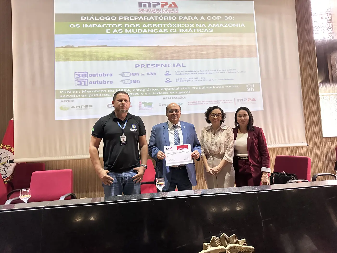 O Governo do Pará, por meio do Instituto de Desenvolvimento Florestal e da Biodiversidade (Ideflor-Bio), apresentou, na quinta-feira (30), durante evento promovido pelo Ministério Público do Estado do Pará, os principais avanços no enfrentamento às mudanças climáticas e na conservação da biodiversidade, em preparação para a 30ª Conferência das Nações Unidas sobre Mudança do Clima (COP30). A participação do Instituto ocorreu no "Diálogo Preparatório para a COP30: Os Impactos dos Agrotóxicos na Amazônia e as Mudanças Climáticas", que ocorre até esta sexta-feira (31), no auditório Nathanael Farias Leitão, em Belém, sob coordenação do Centro Operacional Cível, Processual e do Cidadão (CAO CPC) do MPPA.