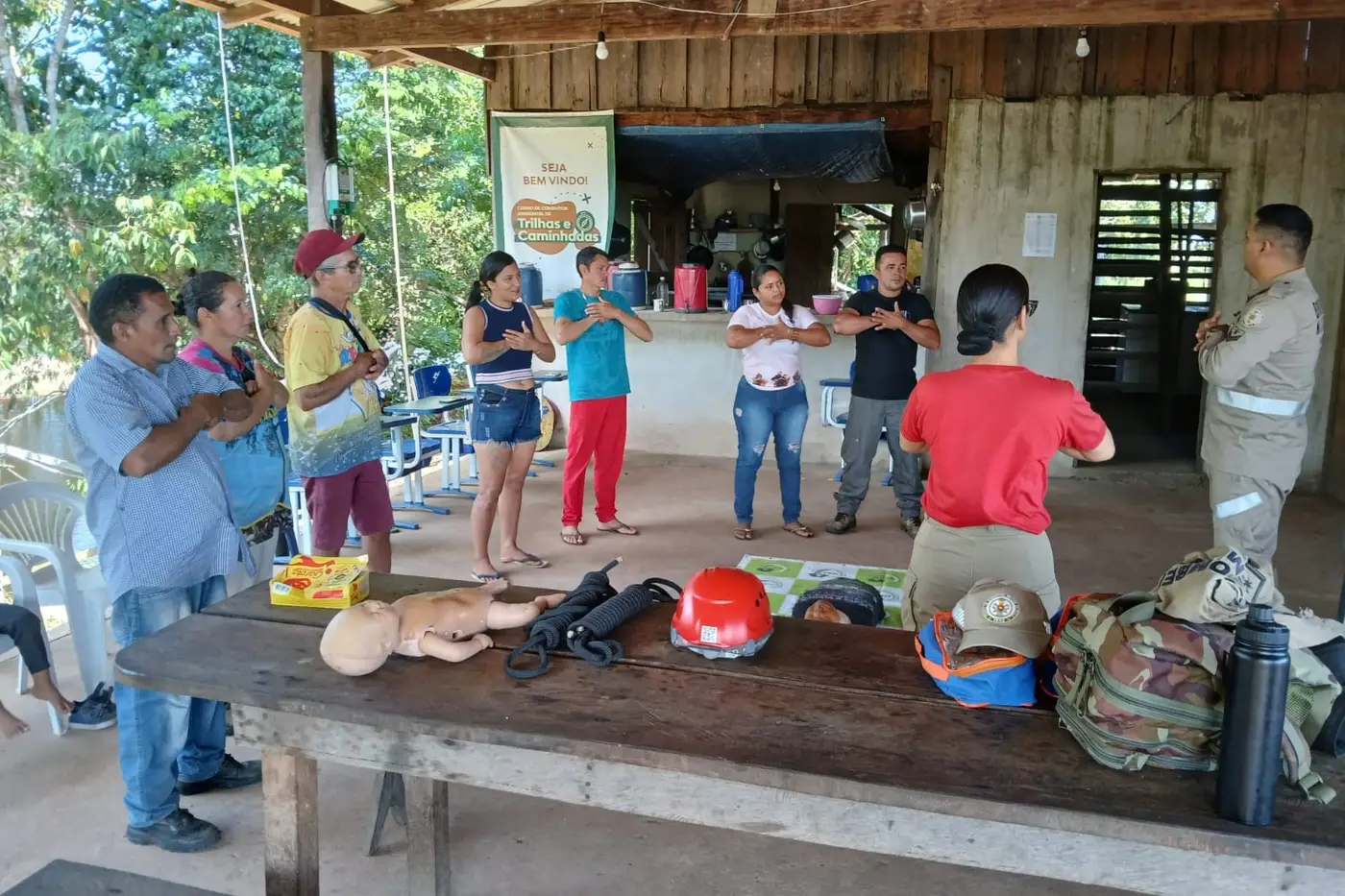 Durante o curso, os participantes tiveram aulas teóricas e práticas nas áreas de turismo, educação ambiental, técnicas de condução de trilhas e primeiros socorros, com foco na valorização do conhecimento tradicional, na hospitalidade e na conservação dos recursos naturais.