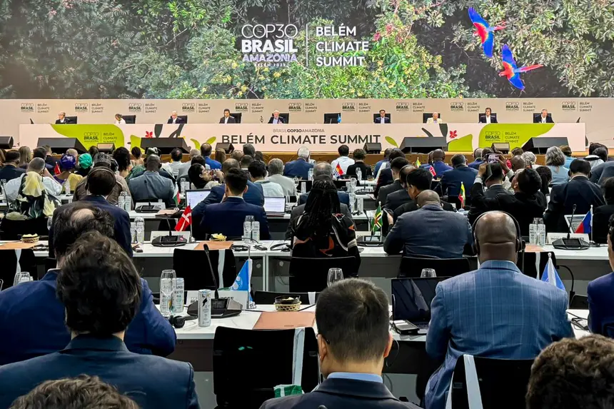 Entre as autoridades brasileiras presentes estão o presidente do Senado Federal, Davi Alcolumbre, e o presidente da Câmara dos Deputados, Hugo Motta, que acompanham as primeiras reuniões diplomáticas da conferência.