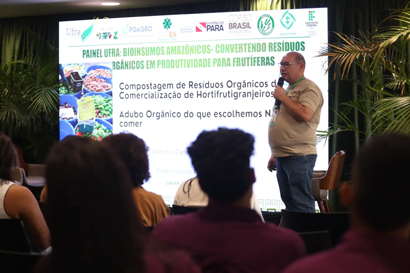 O Governo do Pará, por meio da Empresa de Assistência Técnica e Extensão Rural do Estado do Pará (Emater-Pará), participou, nesta segunda-feira (10), da abertura da programação da 30ª Conferência das Nações Unidas sobre Mudança Climática do Clima (COP30), em Belém. Com o tema "Bioinsumos Amazônicos: Convertendo Resíduos Orgânicos em Produtividade para Frutíferas", em parceria com a Secretaria de Estado de Meio Ambiente, Clima e Sustentabilidade (Semas) e Universidade Federal Rural da Amazônia (Ufra).