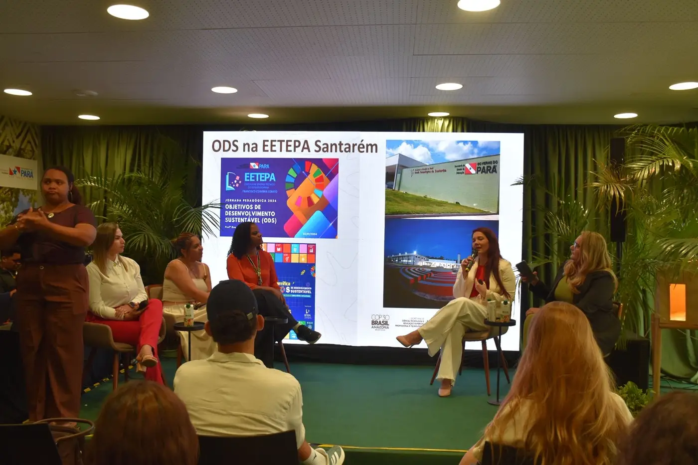 A iniciativa foi conduzida pela Escola de Ensino Técnico do Estado do Pará (Eetepa) e teve como destaque a coordenação do painel pela professora Sarah Batalha, docente da Eetepa Francisco Coimbra Lobato, localizada em Santarém. Representando o Oeste do Pará em um dos maiores eventos ambientais do mundo, a educadora expressou satisfação por levar à COP30 os resultados de uma metodologia de ensino baseada na linguagem da Agenda 2030, implementada desde 2024, com planejamento iniciado no ano anterior.