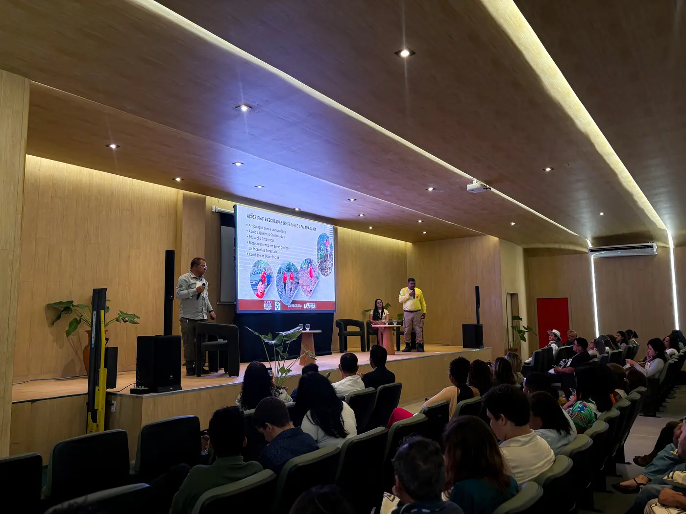 Governança ambiental - Ao final da manhã, uma palestra discutiu diversos temas relacionados à governança ambiental, incluindo o Programa de Manejo Integrado do Parque Estadual da Serra dos Martírios/Andorinhas, em São Geraldo do Araguaia, no sudeste paraense, que contribuiu para que a unidade de conservação do Ideflor-Bio não registrasse incêndios por três anos consecutivos.