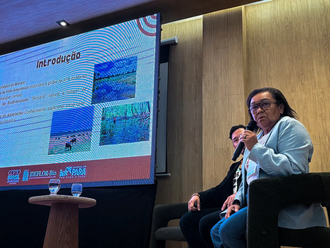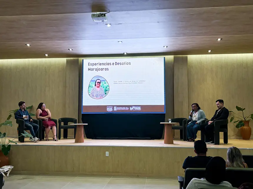 A segunda palestra foi conduzida pela procuradora autárquica do Ideflor-Bio, Elen Moura, sobre o tema “Governança Climática e Gestão Territorial: os desafios do REDD+ em florestas públicas de posse coletiva”. Em seguida, o gerente da Região Administrativa do Marajó, Hugo Dias, conduziu o painel “Território Marajoara: Guardião dos Saberes Ancestrais e da Resistência Climática”.