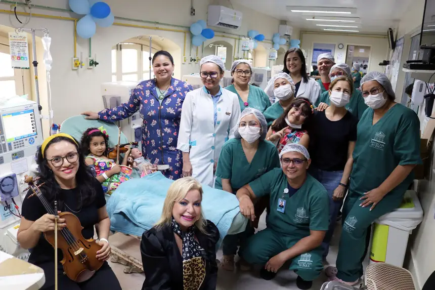 “A música, ela aguça a memória, a concentração, a noção da figura daquilo que ela está ouvindo, que é a percepção do objeto, os estímulos sensoriais, porque ouvir a música e sentir é diferente. Sentir o som do violino faz com que a criança conheça outros sons, não só o som da dor, subjetivamente falando, porque o som da dor é só ver o curativo que é feito. Então, estimula os aspectos cognitivos, mas também os sociais, pois eles querem pegar, eles querem falar, eles querem conhecer. Ao mesmo tempo, possibilita uma saúde mental, porque dispersa a condição só da dor, mas possibilita eles entenderem que mesmo em um ambiente crônico de tratamento, eles podem ter outras experiências”, conclui.