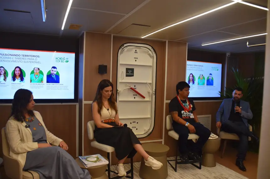 Os estudantes participaram de um circuito de visitação técnica para conhecer o funcionamento da embarcação e também acompanharam o painel “Impulsionando Territórios: parcerias e saberes para o desenvolvimento sustentável”, realizado pelo Instituto Mondó, que reuniu pesquisadores, gestores públicos e representantes de instituições comprometidas com a transição energética e a sustentabilidade na Amazônia.