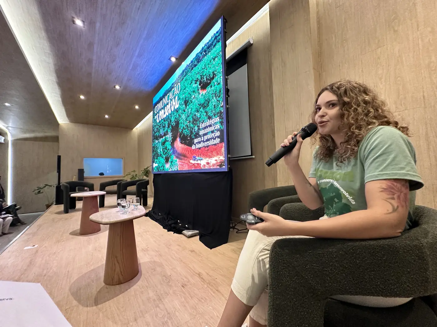 Fernanda Costa, gerente de Comunicação do Instituto do Homem e do Meio Ambiente da Amazônia (Imazon), participou do painel “Comunicação que Conserva”, discutindo estratégias amazônicas que unem ciência, transparência e mobilização social para proteger a biodiversidade em larga escala.