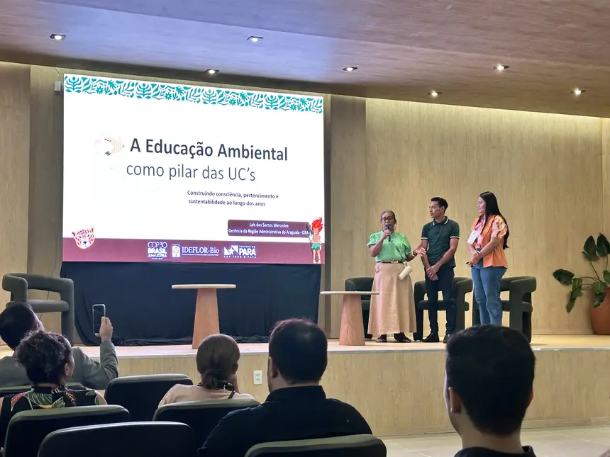 Neste terceiro dia, o eixo “Educação, Comunicação e Valorização da Natureza” colocou no centro da programação a importância da sensibilização, do engajamento social e do uso público das unidades de conservação. Na abertura, a gerente da Região Administrativa do Araguaia do Ideflor-Bio, Laís Mercedes, apresentou a educação ambiental como pilar fundamental para a gestão de áreas protegidas, ressaltando que formar cidadãos conscientes é tão estratégico quanto conservar a floresta em pé.