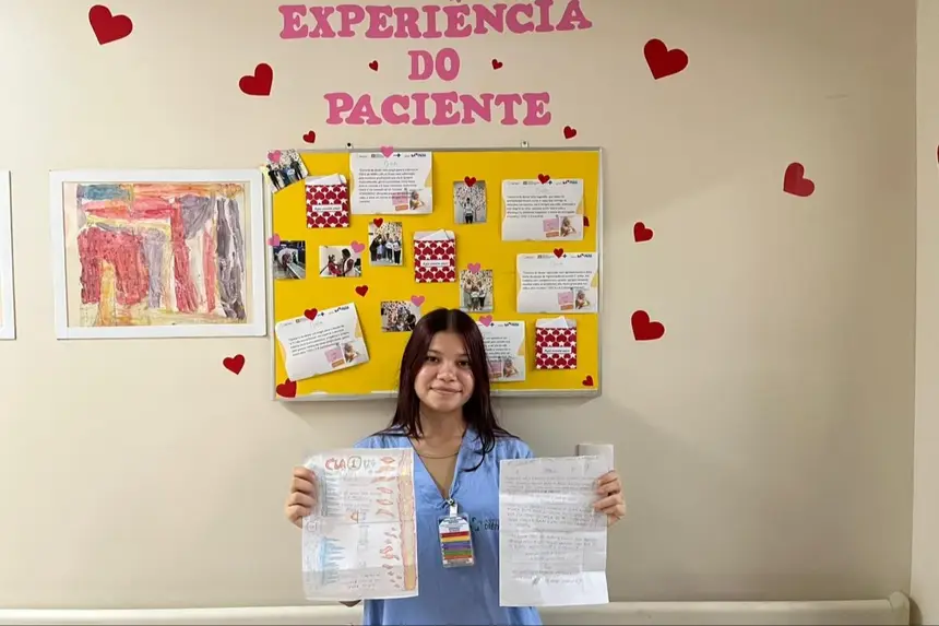 Beatriz Pinheiro é auxiliar de Recursos Humanos no Oncológico Infantil e diz se surpreender pela gentileza e espontaneidade dos pacientes que a presenteiam com desenhos coloridos. As ilustrações cheias de cores e sentimentos já ganharam um cantinho especial. “Recebo cada um (desenho) com muito amor e guardo todos com carinho. A minha parede já se tornou um mural. Eu gosto de olhar e lembrar desses gestos tão gentis e dos abraços deles que melhoram o nosso dia”, disse.