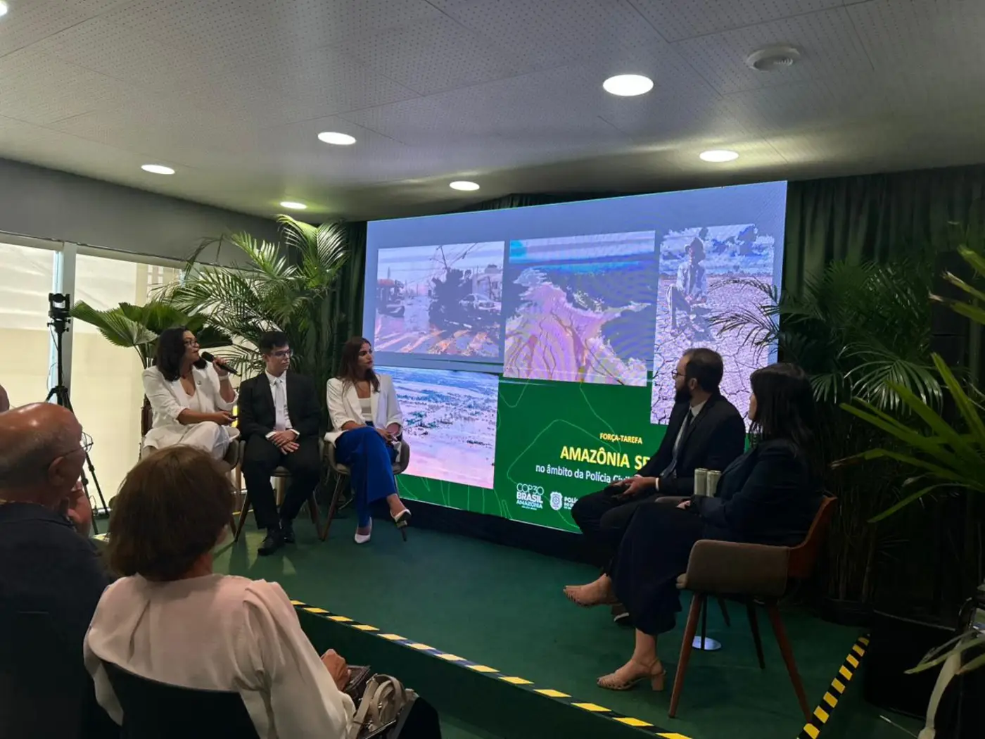 Na parte da tarde, a Polícia Civil, através da Diretoria da Academia de Polícia (Acadepol) e do programa Brasil M.A.I.S, do Ministério da Justiça e Segurança Pública (MJSP), apresentaram o painel “Boas práticas policiais na preservação da Amazônia: força-tarefa Amazônia Segura no Âmbito da Polícia Civil do Pará”. O evento ocorreu na Green Zone e foi aberto ao público, com objetivo de dialogar sobre o papel da segurança pública paraense no enfrentamento direto no desmatamento da Amazônia.