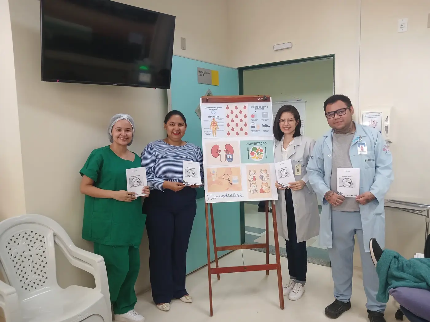 Durante o encontro, foram distribuídos materiais informativos e os pacientes puderam esclarecer dúvidas e compartilhar experiências. A equipe reforçou que o diabetes é uma das principais causas de Doença Renal Crônica, destacando a importância do acompanhamento contínuo e de hábitos saudáveis.