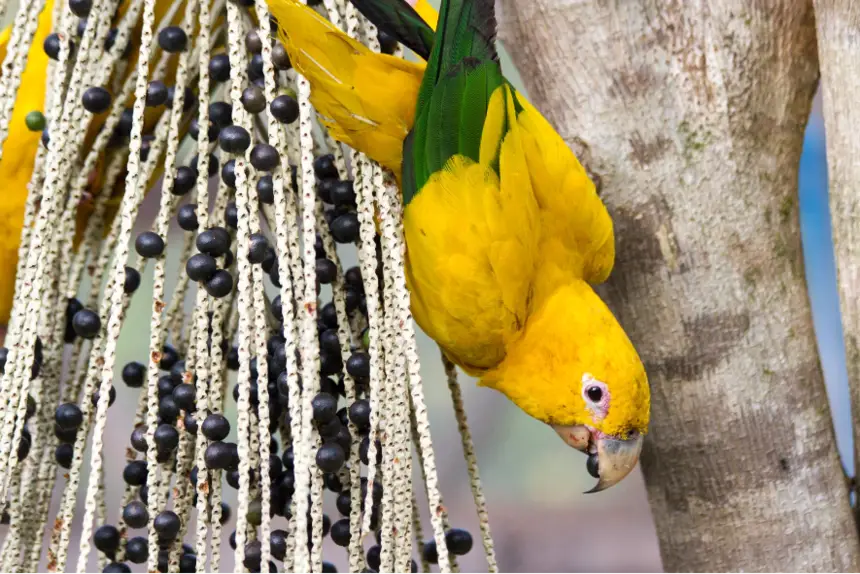 Segundo ele, o desenvolvimento comportamental em grupo é decisivo. “As ararajubas formam bandos familiares. Enquanto parte do grupo se alimenta, outros atuam como sentinelas. Na reprodução, até indivíduos que não estão criando ajudam a alimentar filhotes”, assegura o especialista.