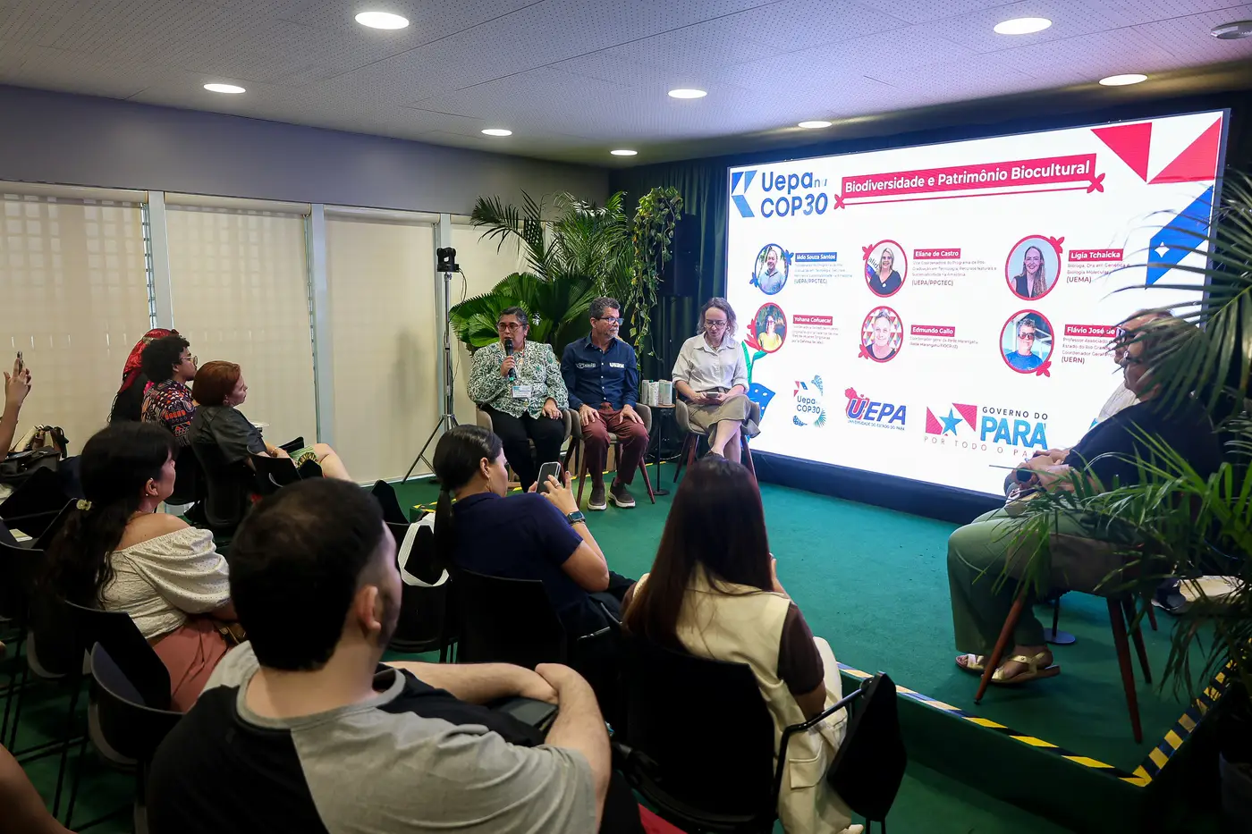 A Universidade do Estado do Pará (Uepa) propôs e realizou, nesta segunda-feira (17), o painel “Biodiversidade e Patrimônio Biocultural”, no Pavilhão Pará, na Green Zone da COP30. Com a temática “Biodiversidade, Governança Multissetorial e Patrimônio Biocultural”, o encontro incentivou a reflexão sobre caminhos para fortalecer a implementação do Plano Clima – Biodiversidade e do Acordo de Paris, articulando a preservação ambiental com a proteção das culturas tradicionais e dos territórios.