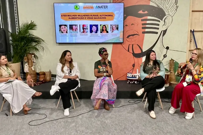O protagonismo feminino na Assistência Técnica e Extensão Rural foi destaque em um painel, na Green Zone, na manhã desta quarta-feira (19), durante a programação da Conferência das Nações Unidas sobre Mudança Climática do Clima (COP30), em Belém.