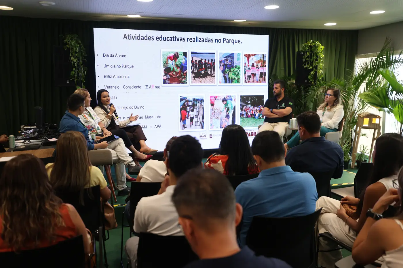 “A educação ambiental como instrumento de gestão ambiental nas 29 unidades de conservação estaduais do Pará” foi o tema do painel promovido pelo Instituto de Desenvolvimento Florestal e da Biodiversidade (Ideflor-Bio), no Pavilhão Pará, na Green Zone da COP30, nesta quarta-feira (19). O debate teve como eixo as ações realizadas especificamente nos parques estaduais do Utinga, em Belém, e da Serra dos Martírios/Andorinhas, em São Geraldo do Araguaia.