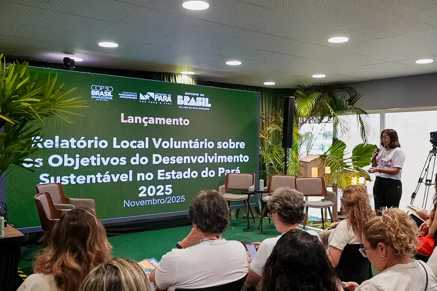 O Governo do Pará, por meio da Secretaria de Estado de Planejamento e Administração (Seplad), lançou, nesta quinta-feira (20), o 6º Relatório Local Voluntário (RLV) sobre os Objetivos de Desenvolvimento Sustentável (ODS) no Estado do Pará, documento que consolida os avanços, desafios e estratégias do governo na implementação da Agenda 2030 em território paraense. O lançamento ocorreu no Pavilhão Pará, na Green Zone, dentro da Conferência das Nações Unidas sobre Mudanças Climáticas (COP 30), em Belém.