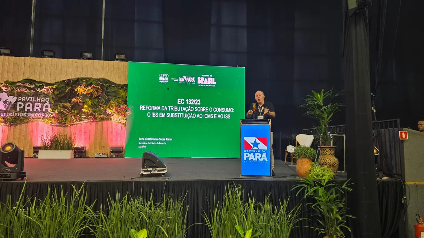 O secretário de Estado da Fazenda, René Sousa Júnior, abordou nesta quinta-feira (20), dentro da programação do Pavilhão Pará-Municípios, o tema “Impactos da Reforma da Tributação”, repassando informações a gestores públicos e técnicos das áreas de finanças, planejamento e arrecadação das prefeituras.