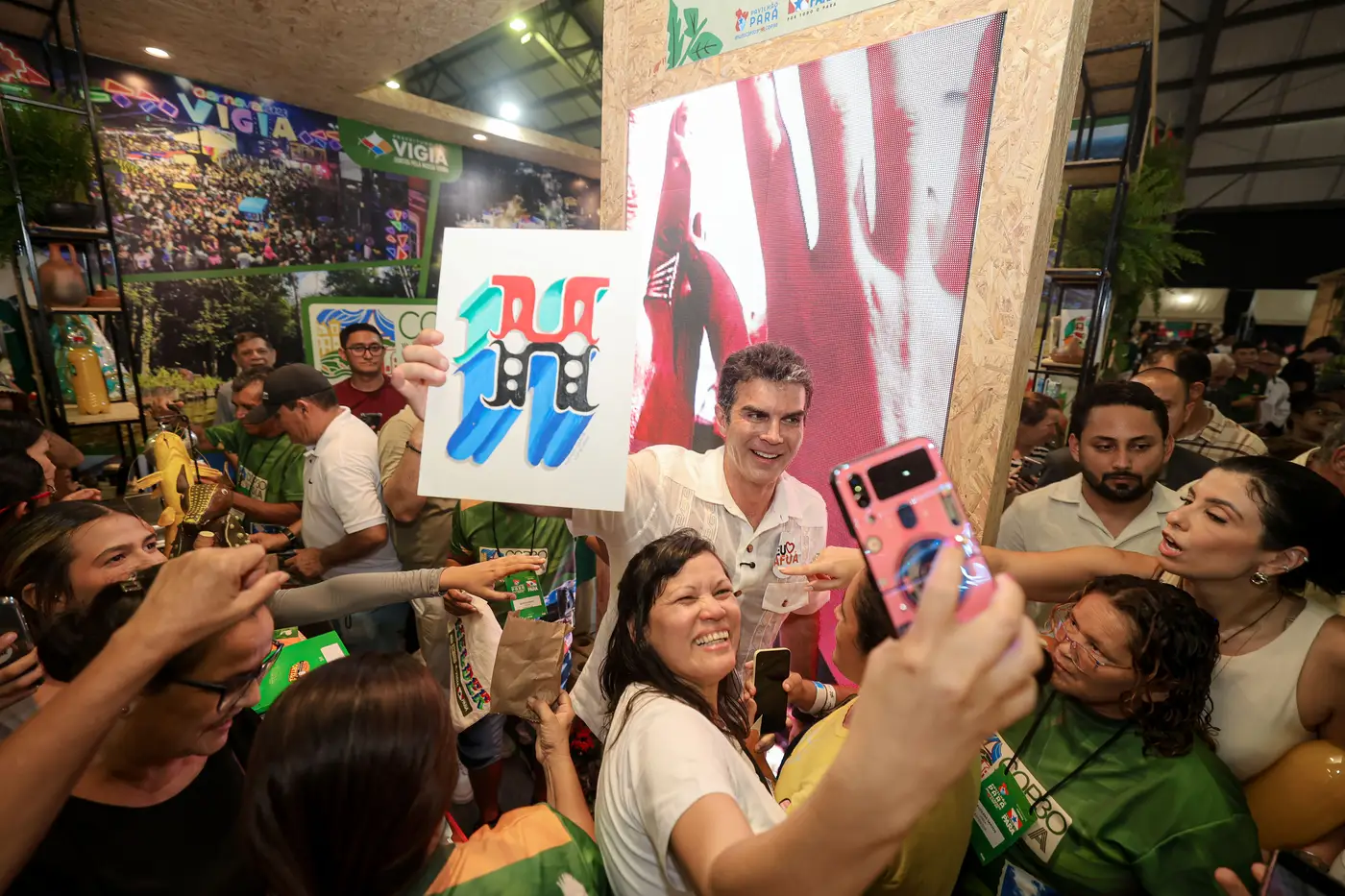 No estande do município de Vigia, o Helder Barbalho ganhou uma ecobag personalizada com letras marítimas desenhadas pelo artista Moisés Guedes. Na sequência, o governador passeou pelo pavilhão em uma "bicitaxi", um meio de transporte característico da cidade de Afuá, no arquipélago do Marajó.