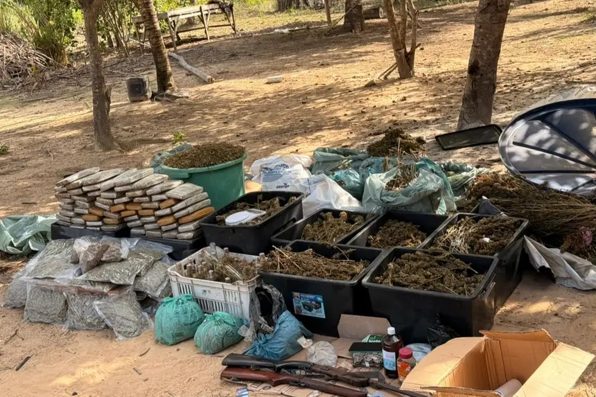 “Como saldo da operação, temos a apreensão de duas pistolas, quatro armas de fabricação artesanal, cerca de 263 quilos de maconha, 12 aparelhos celulares, cerca de 50 munições e 45 cartuchos de diversos calibres, um rolo de barbante, sete balanças de precisão, três tesouras de poda e duas caminhonetes, além da prisão de nove pessoas, sendo oito homens e uma mulher”, finalizou o superintendente.