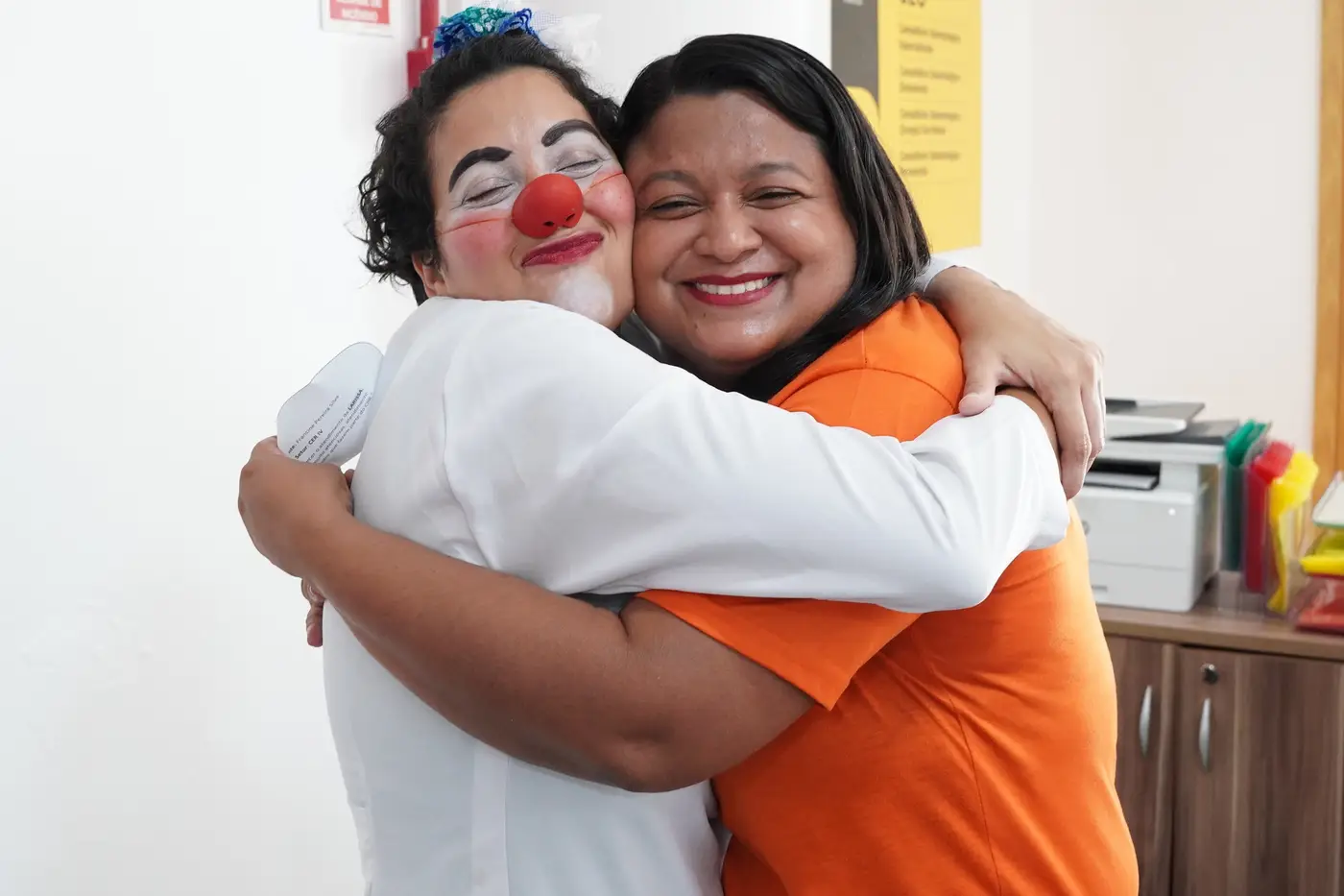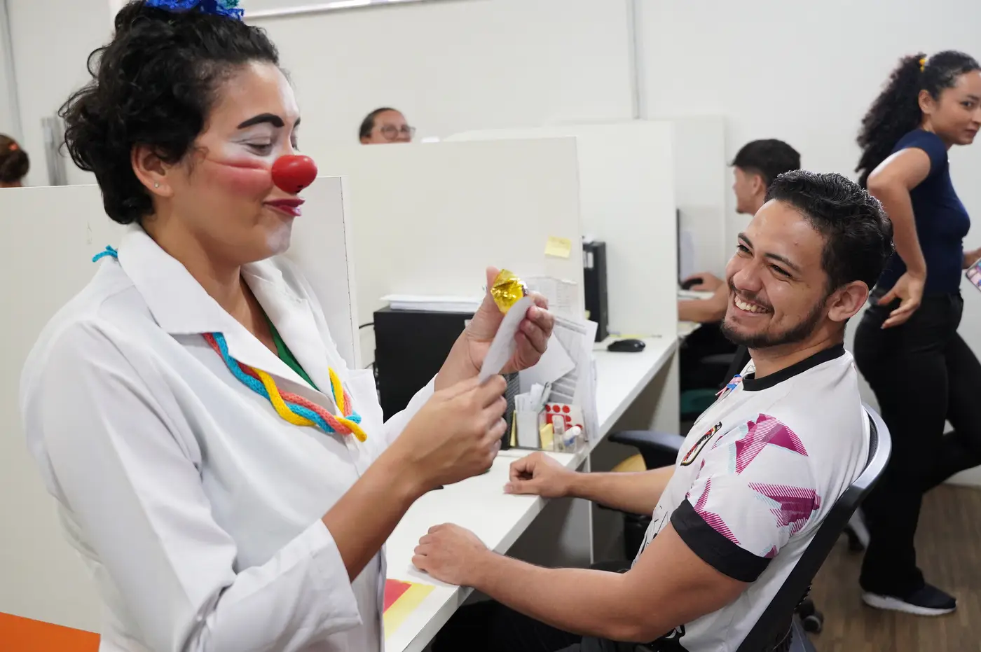 O momento de entrega dos reconhecimentos também conta com uma participação especial que traz leveza e poesia ao ambiente: a palhaça Nanna Sensitiva, interpretada pela professora de Teatro do CIIR, Paula Barros. A intervenção contribui para tornar o encontro mais humanizado e simbólico. Paula explica que a personagem atua como uma “médica da alma”, oferecendo um gesto metafórico de cuidado aos colaboradores.