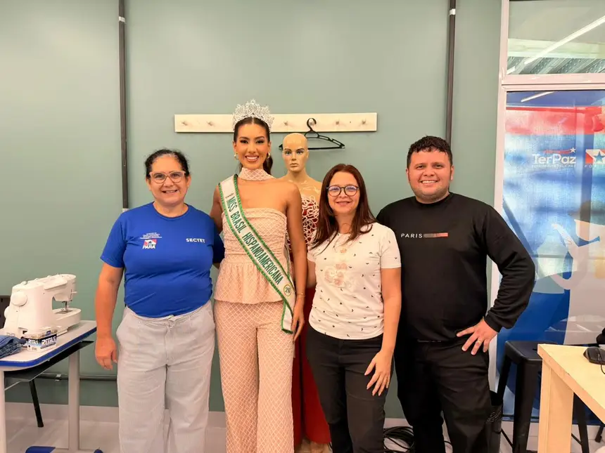 As alunas do Curso de Costura e Moda, desenvolvido por meio da parceria entre a Secretaria de Estado de Ciência, Tecnologia e Educação Profissional e Tecnológica (Sectet) e a Usina da Paz da Terra Firme, dentro do programa Pará Profissional, tiveram um projeto selecionado para confeccionar as roupas que serão usadas pela Miss Brasil Hispanoamericana, a paraense Cássia Adriane, durante o confinamento e as etapas oficiais do concurso Reina Hispanoamericana 2026, que ocorrerá em fevereiro, na Bolívia.