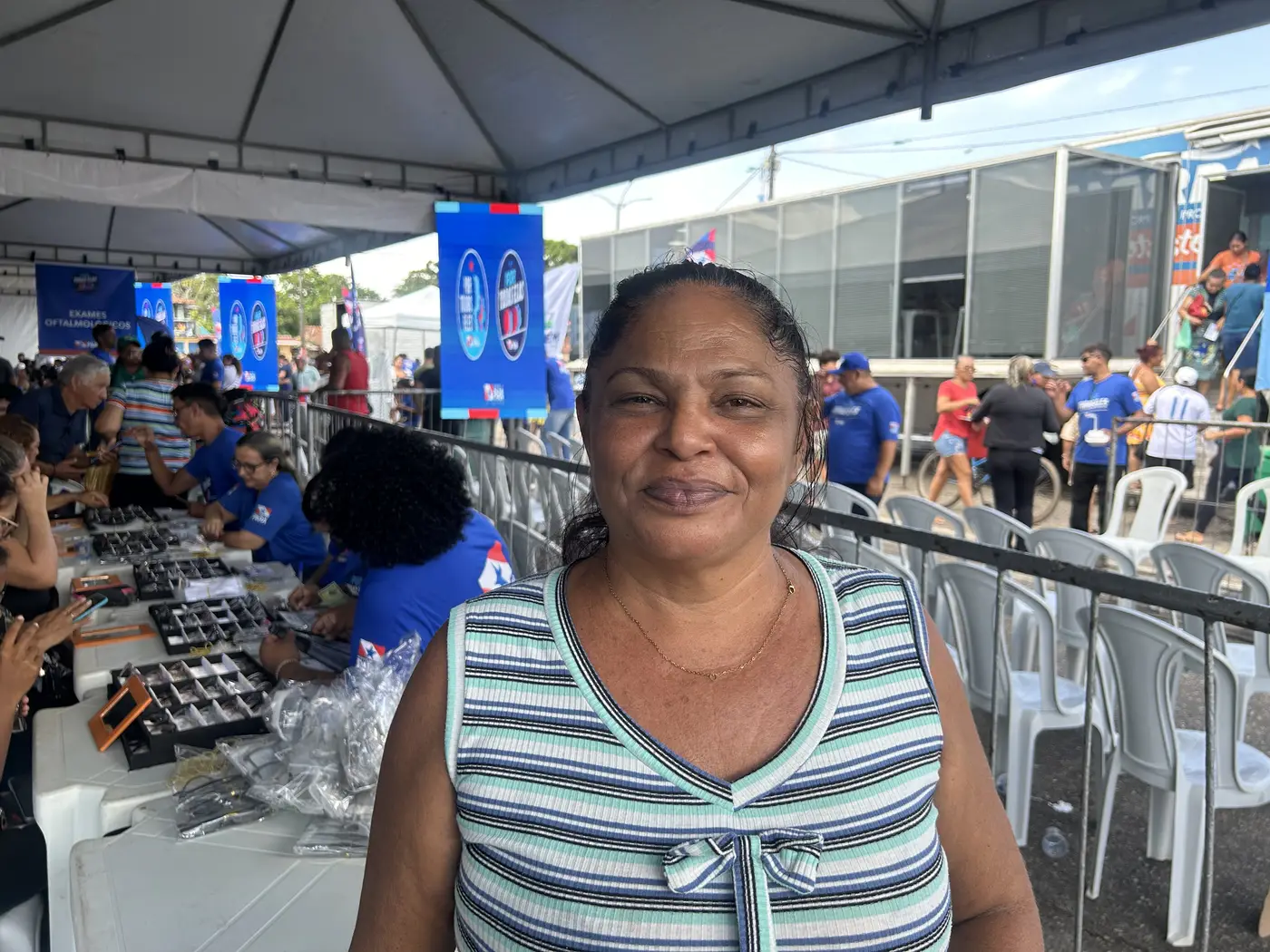 Moradora do bairro Água Boa, Débora Freitas, de 48 anos, aproveitou a oportunidade para realizar exames oftalmológicos e garantiu a escolha da armação para os novos óculos de grau. “Eu estava precisando muito e não tinha condições de pagar. Fui bem atendida e agora vou poder enxergar melhor no dia a dia. Estou feliz com esse cuidado aqui perto de casa”, contou.