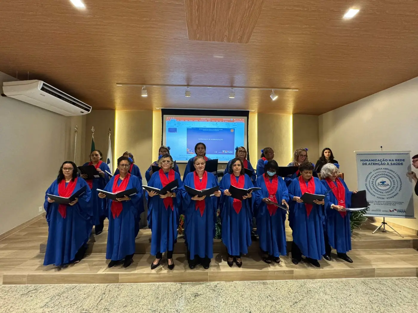A abertura do workshop contou com a apresentação do Coral “Voz e Vida”, formado por servidores e pacientes do Hospital Ophir Loyola, simbolizando o compromisso da instituição com a humanização por meio da arte, do acolhimento e da construção de vínculos afetivos no ambiente de cuidado.