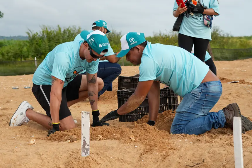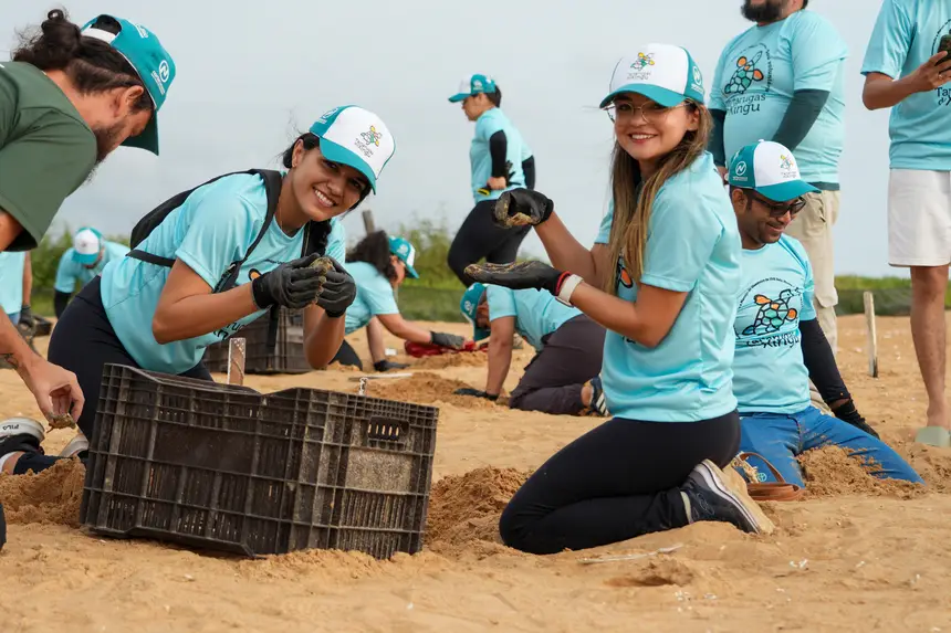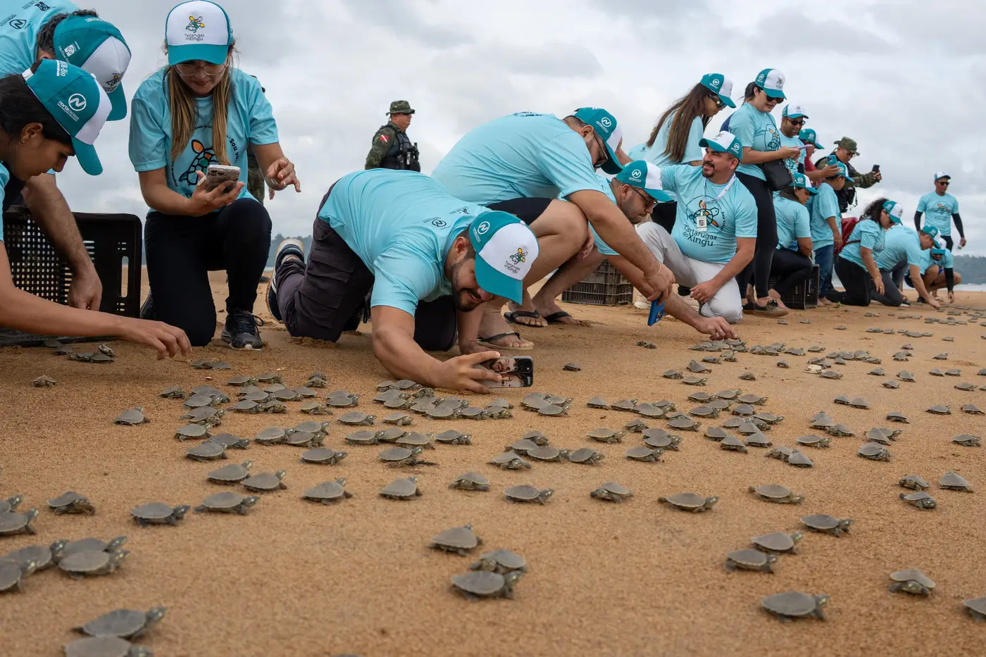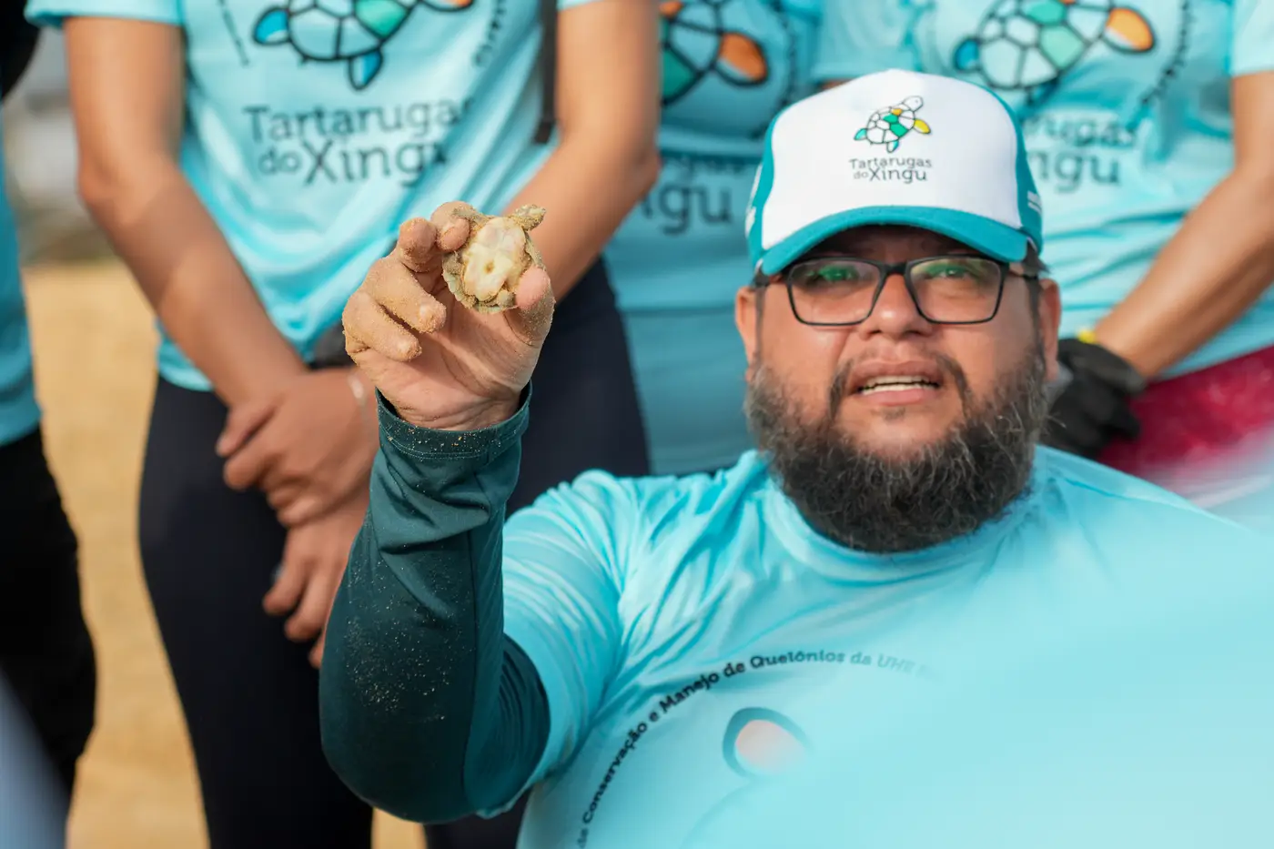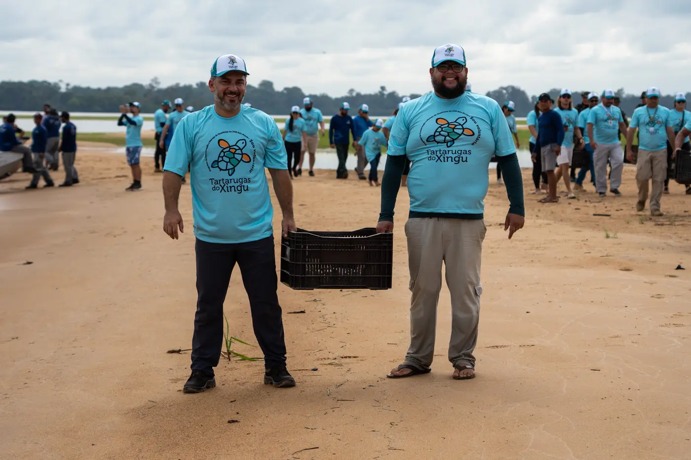 Encantamento - Entre os voluntários, 44 colaboradores da Norte Energia participaram ativamente das escavações, do resgate e da soltura dos filhotes, vivenciando cada momento do processo emocionante da corrida das pequenas tartarugas em direção ao Xingu. Para muitos, como Marlon de Oliveira, a experiência ultrapassou o campo profissional, tocando fundo na identidade amazônica. “É emocionante participar mais uma vez dessa ação. Além de contribuir diretamente para a proteção dos quelônios do Tabuleiro do Embaubal, temos a oportunidade de vivenciar a riqueza natural do Xingu. Como amazônida, sinto que colocar a mão na massa me torna ainda mais parte desse ecossistema”, contou.