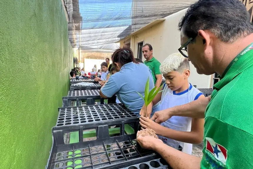 Com o objetivo de aproximar crianças, educadores e comunidades da educação ambiental, o Instituto de Desenvolvimento Florestal e da Biodiversidade (Ideflor-Bio) lançou o projeto Viveiro Pedagógico. Instalado no Escritório Regional do Baixo Amazonas, em Santarém, região Oeste paraense, o equipamento proporciona uma imersão ao ciclo real de cultivo, reforçando valores de cuidado e responsabilidade socioambiental. Os alunos do 5º ano da Escola Municipal Fluminense foram os primeiros a participar dessa imersão prática no universo da produção de mudas.